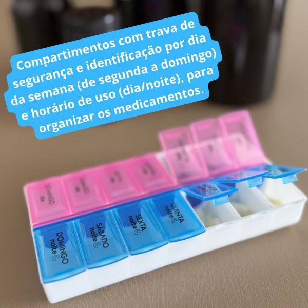 Chega de esquecer remédio ou ficar com a bolsa cheia de cartelinhas soltas. Com este porta comprimidos semanal, você organiza os remédios de 7 dias em um só lugar. Ideal para quem cuida de idosos ou pessoas que usam remédios controlados, têm uma rotina corrida e precisam manter a medicação em dia. Características: • 7 divisórias – uma para cada dia da semana • Tamanho compacto: 7 × 13 × 2 cm • Plástico resistente • Leve e fácil de carregar na bolsa ou mochila • Perfeito para viagens Benefícios: • Ajuda a não esquecer doses e horários • Facilita o cuidado com quem toma muitos remédios • Evita bagunça de cartelas e frascos • Traz mais segurança e organização para o dia a dia Produto enviado pela R&Astorebr, com todo cuidado e atenção no seu pedido.