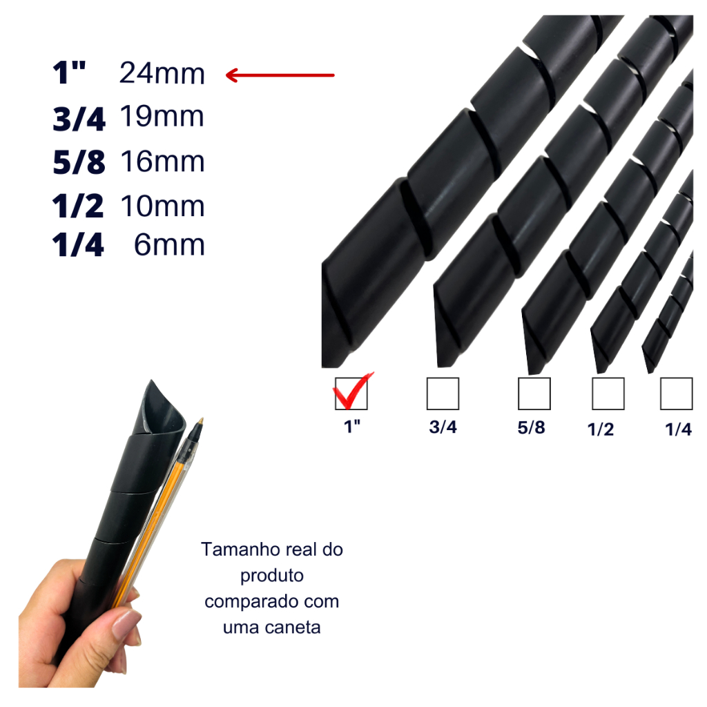 Organizador de fios e cabos - espiral 24 mm (1 polegada) 1, 3 e 5 metros