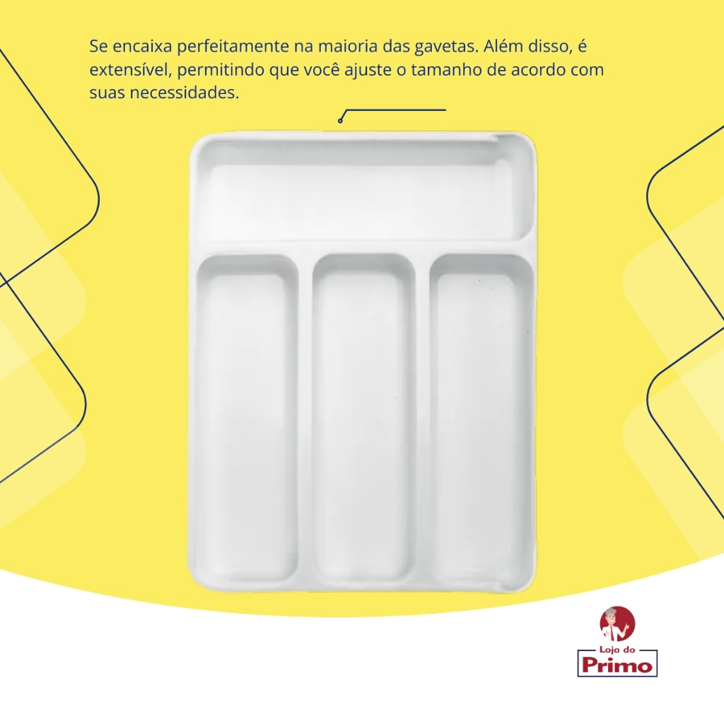 Organizador de Gaveta Extensível Divisor Porta Talheres e Utensílios – Arthi Descrição do Produto: Mantenha suas gavetas organizadas com o Organizador de Gaveta Extensível da Arthi, um item versátil e funcional projetado para armazenar talheres, utensílios e outros acessórios de cozinha com praticidade. Com um design inovador, ele se adapta ao tamanho da gaveta, permitindo otimização do espaço e facilitando o acesso aos itens do dia a dia. Características Principais: ✔ Design Extensível – Ajuste a largura conforme a necessidade, variando de 25,5 cm a 48 cm, ideal para diferentes tamanhos de gavetas. ✔ Compartimentos Inteligentes – Possui divisórias que organizam os talheres e utensílios de maneira prática e acessível. ✔ Material Resistente – Fabricado em plástico de alta qualidade, garantindo durabilidade e fácil limpeza. ✔ Cor Off White – Visual moderno e neutro, combinando com diferentes estilos de cozinha. ✔ Fácil de Usar – Expansível de forma simples, basta deslizar para ajustar ao tamanho da gaveta. Dimensões: 📏 Produto Fechado: Comprimento 33,5 cm x Largura 25,5 cm x Altura 5,5 cm 📏 Produto Aberto: Comprimento 33,5 cm x Largura 48 cm x Altura 5,5 cm Benefícios: ✅ Aproveitamento máximo do espaço interno da gaveta. ✅ Organização eficiente de talheres e utensílios. ✅ Mantém a cozinha mais prática e funcional. ✅ Fácil de limpar e resistente ao uso diário. Ideal para quem busca praticidade e organização na cozinha! 😉