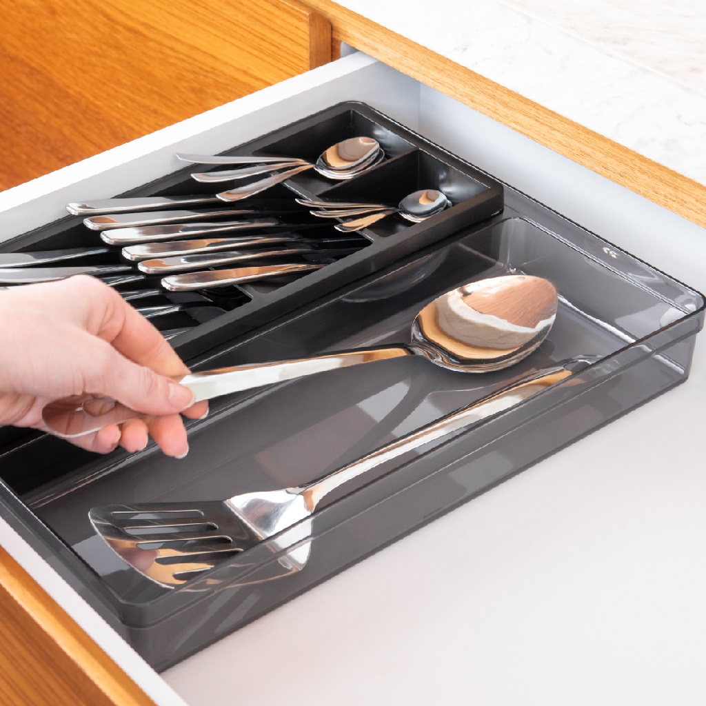 Organizador de Gaveta Porta Talher Utensílios de Cozinha Clear OU Acrílico Preto / Branco 30 x 38cm