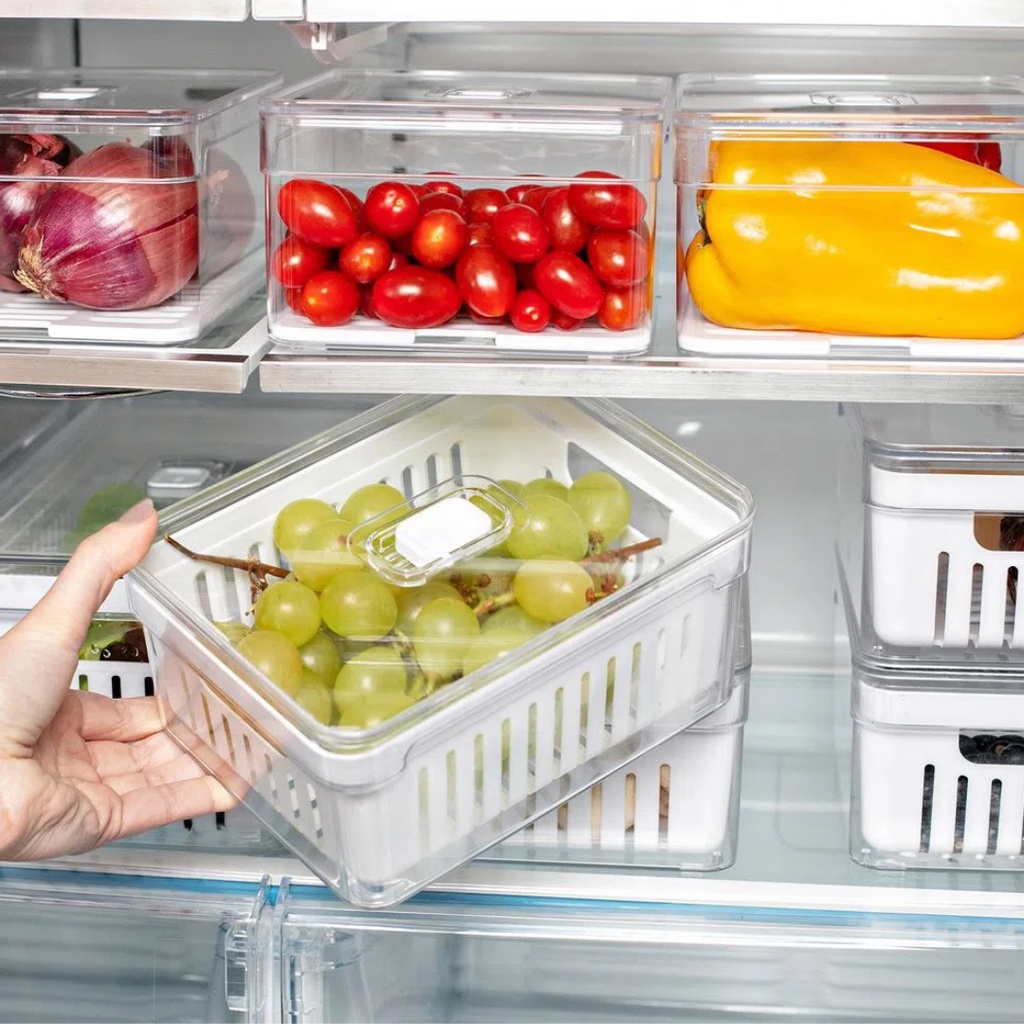 Organizador De Geladeira 5L Com Tampa e Cesto Escorredor Legumes Frutas Verduras Acrílico Clear OU