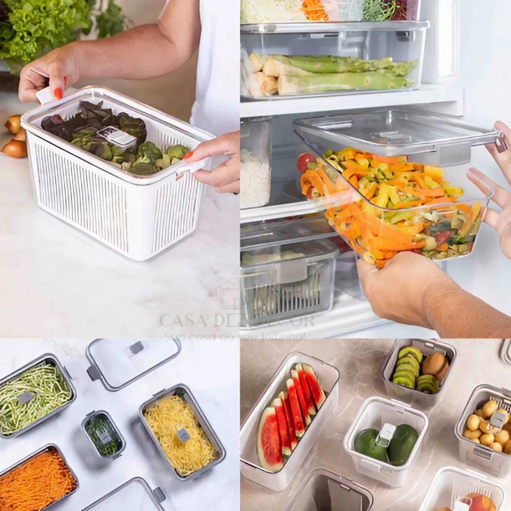 Organizador de Geladeira Acrílico e Tampa de Trava Hermética 1,3l e 2,5l Frutas Saladas Alimentos
