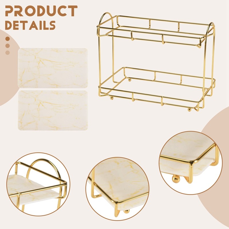 Armazenamento de seus itens diários, como cremes, loções, óleos, bandeja atraente e conveniente. Armazenamento de seus itens diários, como cremes, soros, loções, óleos, bandeja atraente e conveniente. bandeja de vestido. Bandeja Perfume para cômoda sem tampa faz armazenamento e exibição fácil e simples. A placa de base PP espessada é impermeável e fácil de limpar, e a textura de mármore de imitação é a placa de base PP espessada é à prova d'água e fácil de limpar, e a textura de mármore de imitação é bonita. Bandeja porta joias, ajuda você a reduzir a desordem de bancada, torna a organização clara de relance, e permite ter todas as joias, anéis, brincos, colares, berloques dentro do alcance. Estilo: C Cor branca dourada: ouro-branco Material da linha: metal + PP Tamanho: camada dupla grande: 31,5x17,5x23cm Conteúdo da Embalagem: 1 * Rack de armazenamento O conteúdo da embalagem acima, outros produtos não estão incluídos. A cor do item na imagem é um pouco diferente da nota: Reflexões leves e diferentes podem fazer com que a cor do item na imagem seja um pouco diferente da real. O erro permitido de medição é de +/- .