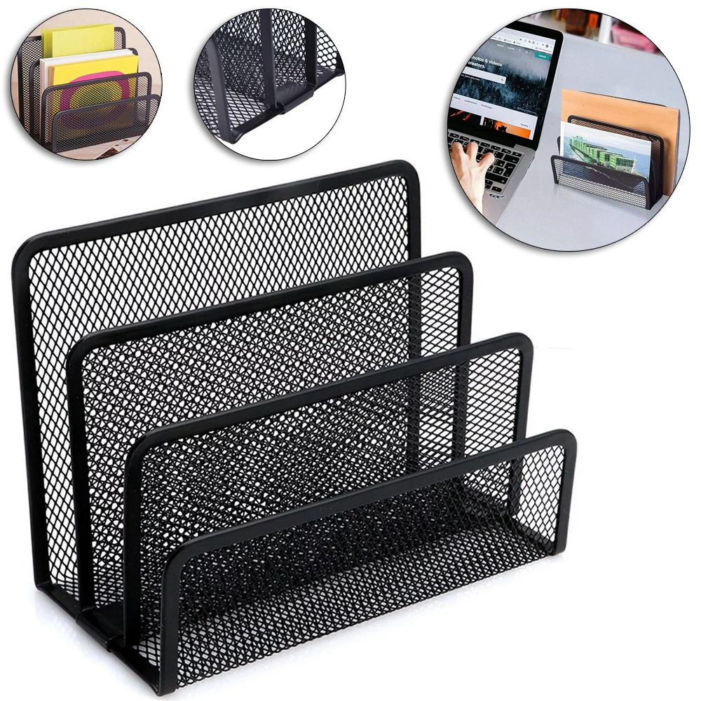 ORGANIZADOR DE MESA DE ESCRITORIO ARAMADO COM 3 DIVISORIAS 17,8X14X8,5CM