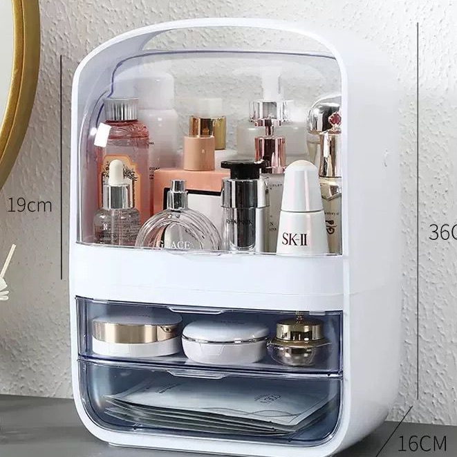 O Organizador de Maquiagem de Luxo é um item elegante e prático para a organização de produtos de beleza, ideal para penteadeiras e áreas de maquiagem. Com um design sofisticado, este organizador é projetado para acomodar uma variedade de itens, desde maquiagem e acessórios até loções, perfumes e outros produtos de cuidados pessoais. Possui várias compartimentos e divisórias para armazenar e separar diferentes tipos de produtos, facilitando o acesso e mantendo tudo organizado. Além disso, possui uma gaveta integrada que oferece espaço adicional para guardar itens menores ou mais pessoais. Sua portabilidade permite que seja facilmente transportado entre diferentes áreas da casa ou até mesmo levado em viagens, garantindo que sua rotina de cuidados pessoais esteja sempre bem organizada onde quer que você esteja. Feito com materiais de qualidade e acabamento luxuoso, este organizador não apenas proporciona praticidade, mas também adiciona um toque de elegância à sua penteadeira ou área de maquiagem. É uma escolha ideal para quem busca funcionalidade, estilo e sofisticação na organização de seus produtos de beleza. – Altura:36cm – Largura:18cm – Profundidade: 26cm contem 1 organizador Material: Plástico Agradecemos por escolher-nos e estamos ansiosos para oferecer a melhor experiência de compra para você! boa compras!