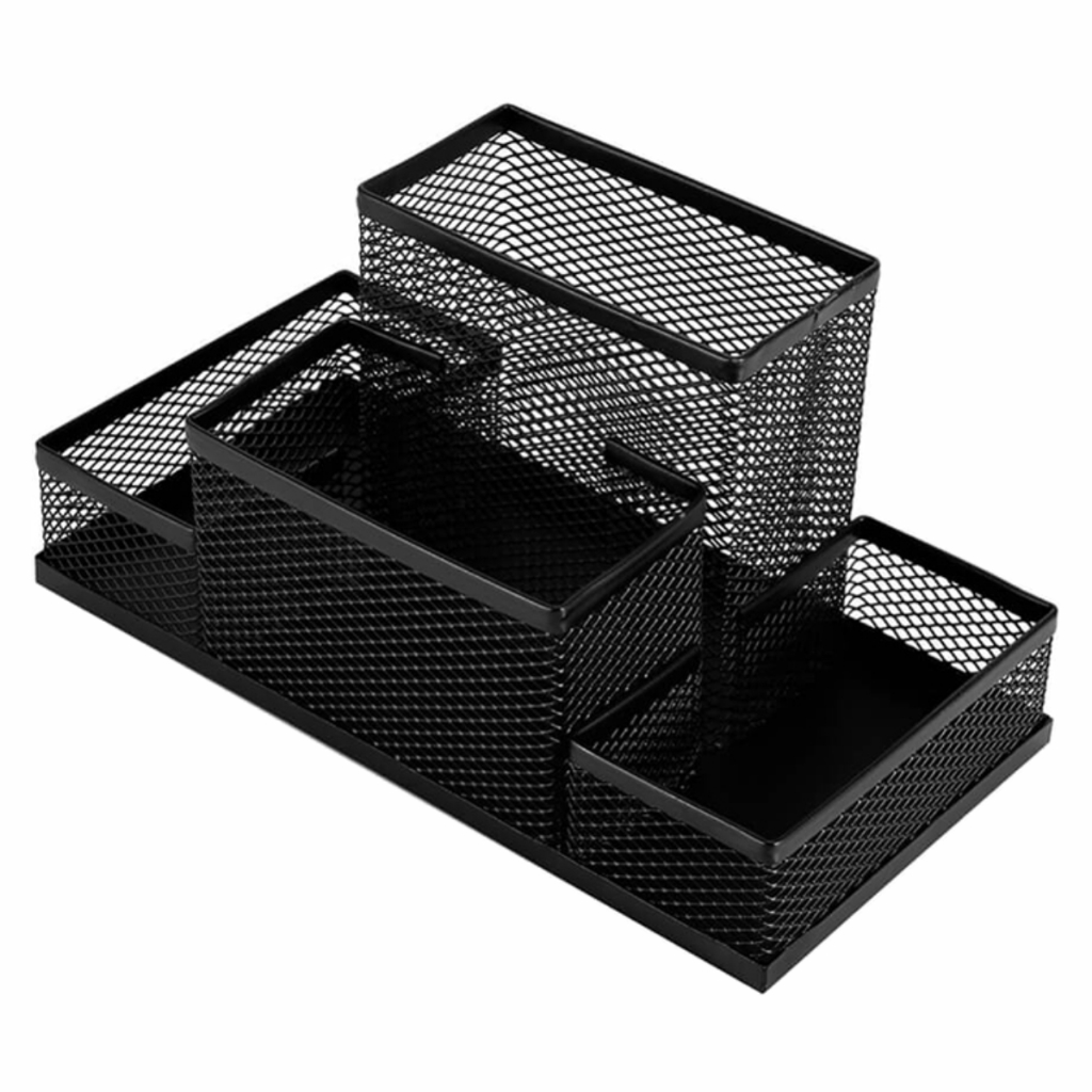 Organizador De Mesa Escritório Aramado Bandeja Cesto Porta Caneta Lápis Clips Giratório Preto