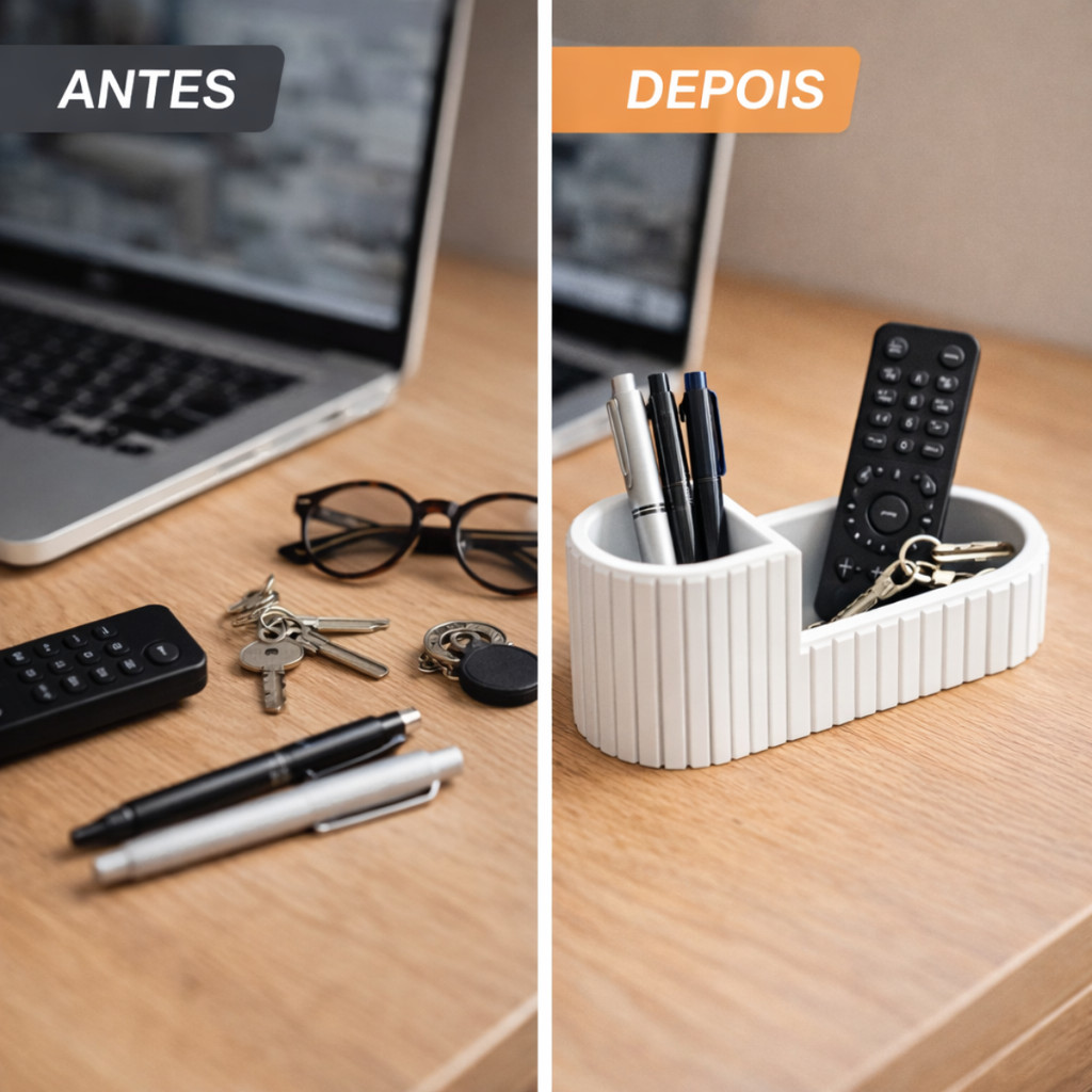 🧩 MULTIFUNCIONAL E PRÁTICO Perfeito para organizar: ✔ Canetas e lápis ✔ Controle remoto ✔ Chaves ✔ Celular ✔ Pequenos objetos do dia a dia 🏡 DESIGN MODERNO E ELEGANTE O acabamento ripado traz um visual sofisticado que combina com: ✔ Escritórios ✔ Home office ✔ Sala de estar ✔ Recepção 🚀 MAIS ORGANIZAÇÃO, MENOS BAGUNÇA Deixa sua mesa limpa e organizada Facilita o acesso aos objetos Evita perda de itens importantes 💪 RESISTENTE E DURÁVEL Produzido com material de qualidade, leve e resistente para uso diário. 📏 MEDIDAS APROXIMADAS Altura: 7 cm Largura: 20 cm 📦 CONTEÚDO DO PACOTE 1x Organizador de Mesa Ripado 💡 IDEAL PARA VOCÊ QUE: ✔ Quer mais organização no dia a dia ✔ Busca praticidade no trabalho ✔ Gosta de ambientes modernos e organizados