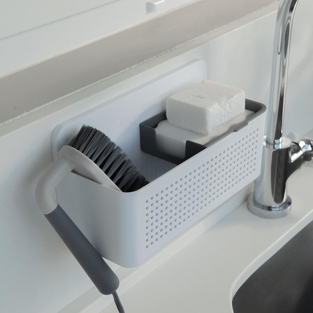 ATENÇÃO, NÃO REALIZAMOS VENDAS PARA CNPJ Detalhes do produto • Fixação por adesivos resistentes e sem necessidade de furar as paredes • Tecnologia do adesivo Ultra Click para encaixe mais firme, fácil e seguro • Compartimento maior para detergente e escovas e menor para sabão e esponja • Mantém a modularidade da Linha Flow, organizando itens essenciais do dia a dia Informações Técnicas Altura:13 cm Largura:11 cm Comprimento:25 cm Peso:0.22 kg Material:PP Instruções de Uso Limpe e seque a superfície Remova a película e cole o adesivo Pressione o adesivo para fixação Encaixe o produto de cima para baixo Adesivo com super aderência Fácil instalação Não precisa de furadeira O organizador de parede para tanque da Linha Flow foi pensado para deixar os itens do dia a dia sempre à mão. Composto por duas partes, ele acomoda desde detergente e escova até sabão e esponja, criando um fluxo mais prático e organizado. A instalação é simples e sem sujeira, a fixação por adesivo Ultra Click garante um encaixe seguro, estável e sem a necessidade de furar a parede. Perfeito para transformar a área de serviço em um espaço mais organizado Cuidados Sugere-se higienizar com sabão neutro e esponja macia, evitando produtos abrasivos no processo de limpeza. Conteúdo da embalagem 1 organizador de parede para tanque Ou Linha Flow 1 adesivo Ultra Click