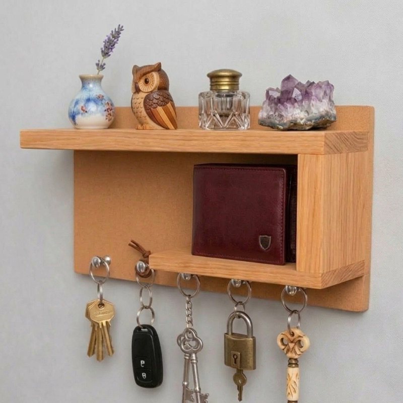 Organizador De Parede Porta Chaves E Correspondência Madeira Pinus Natural Suporte Hall De Entrada