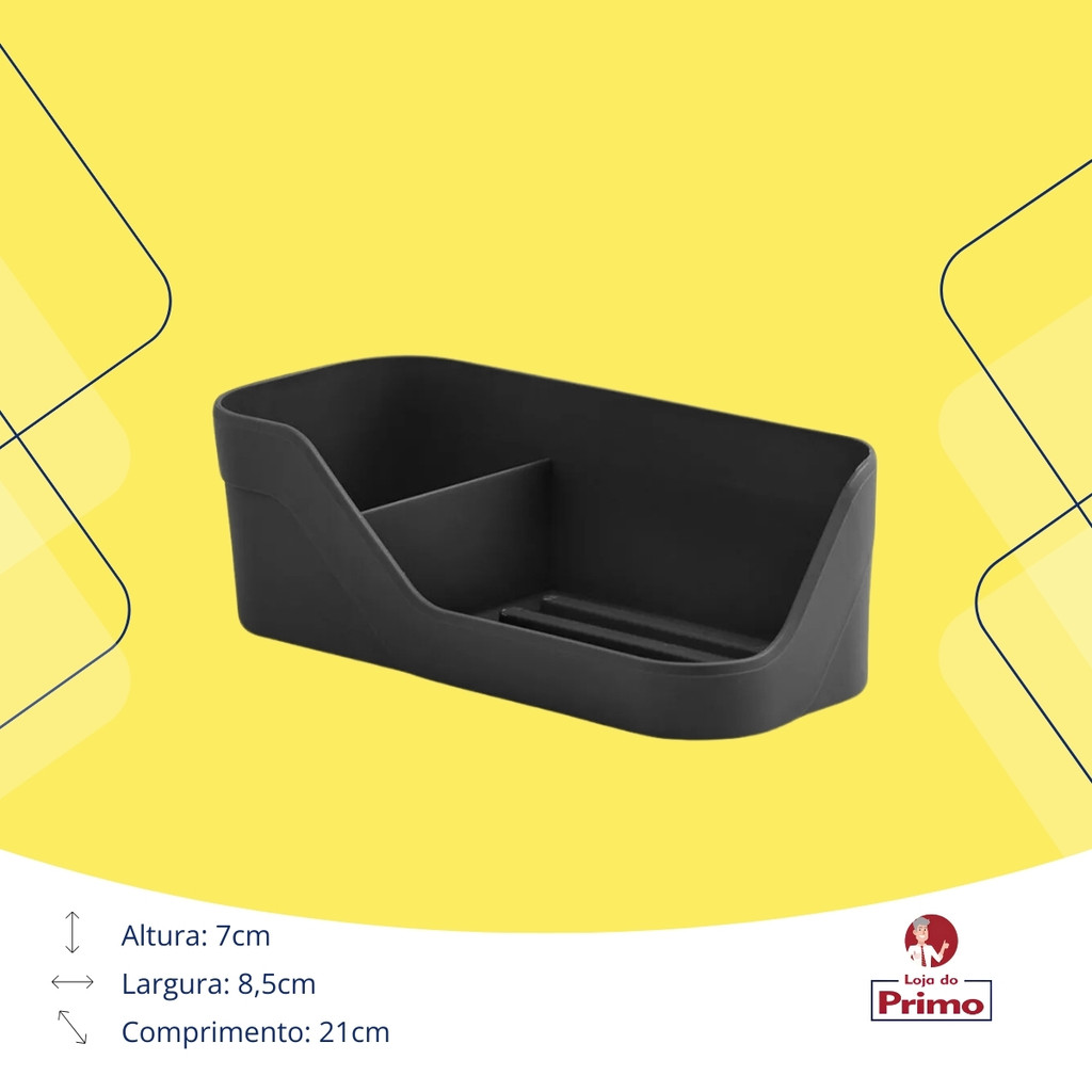 Organizador de Pia Porta Sabão Detergente E Bucha Preto Compacto Prático Cozinha OU