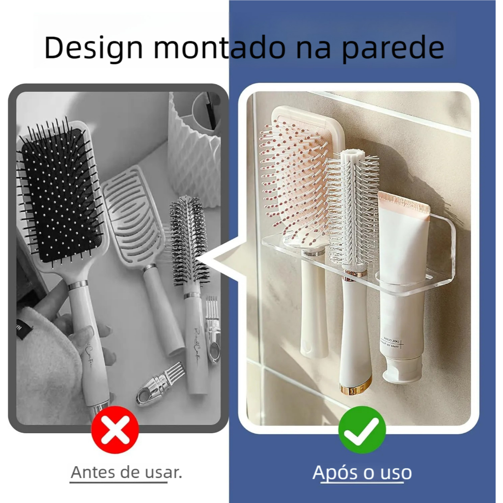 【Organizador de Quarto】Suporte Escova de Cabelo – Acrílico Cristal, Perfeito para Guarda Roupa!