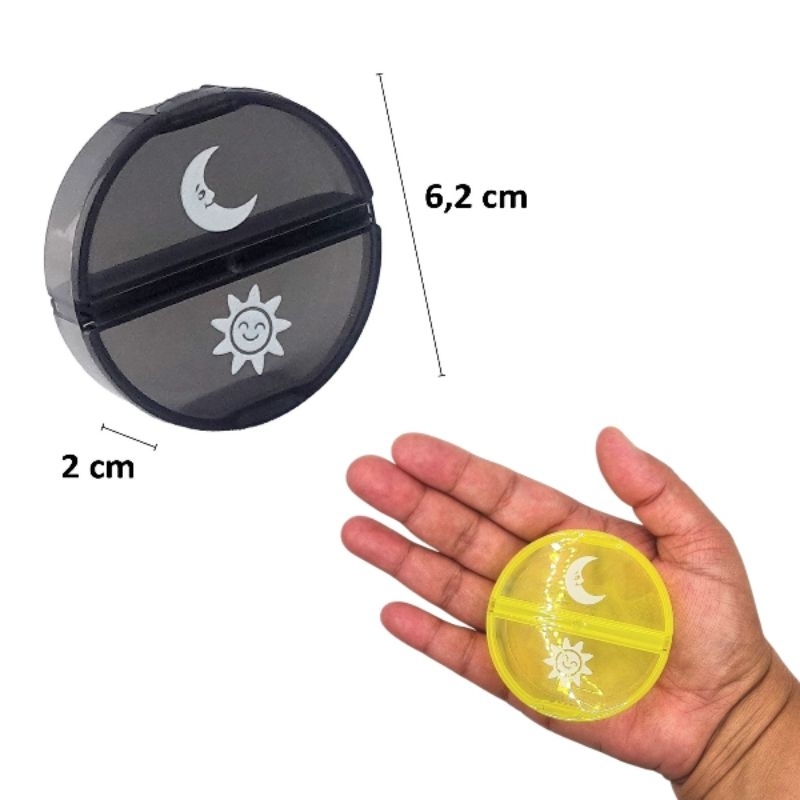 Pronta entrega. Enviamos em até 24 horas úteis. *Garantia: 12 meses para defeitos de fabricação à partir da emissão da nota fiscal* Porta comprimidos diário dia e noite. Este produto é ideal para você que precisa de uma ajudinha para organizar seus medicamentos de uso contínuo. A sua principal função é lembrar o usuário de tomar seus remédios de forma correta e organizada, além de facilitar o transporte dos medicamentos ao longo do dia. Ele é composto por 2 compartimentos, representando os dois períodos do dia. Este modelo é bem espaçoso, comportando muitos comprimidos, e é destinado ao uso por curtos períodos, sendo mais indicado para a organização dos remédios na rotina diária do usuário. Com este organizador, você poderá transportar seus remédios para qualquer lugar com facilidade e segurança, como no trabalho, na faculdade, em atividades recreativas, na igreja etc. Além disso, ele te ajudará a evitar esquecimentos, enganos e duplicidade na administração das pílulas. Ele é muito útil também para ajudar pessoas que sejam responsáveis pela medicação de dependentes, como idosos ou crianças. Com a correria do dia a dia, muitas vezes esta pode ser uma tarefa complicada, mas com este porta comprimidos você terá muito mais facilidade, praticidade e segurança para exercê-la. Este modelo é produzido com plástico resistente e a tinta das inscrições é de boa qualidade, o que garante a durabilidade do produto; e está disponível em 3 cores: amarelo, azul, preto e rosa. E se você estiver precisando de uma garrafa bonita e de preço acessível para transportar a água necessária para tomar os remédios e também ajudar na hidratação ao longo do dia, aproveite nossa promoção e adquira o kit com o organizador e a garrafinha. Adquira estes produtos e desfrute de muito mais facilidade para cuidar da sua saúde e daqueles no seu entorno.