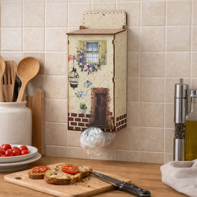 Organizador De Sacolas Em MDF Adesivado Puxa Saco De Parede Decoração Cozinha