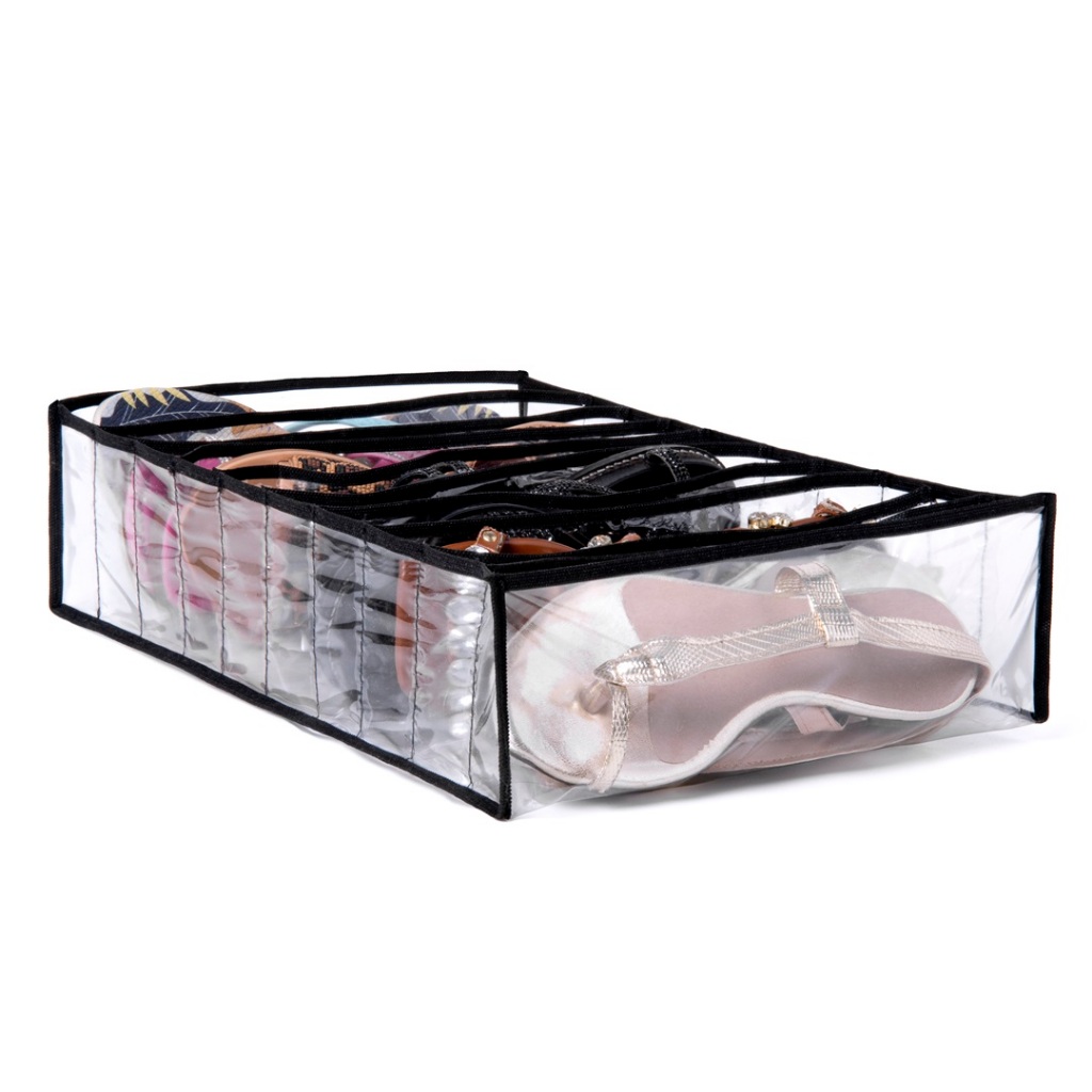 ORGANIZADOR RASTEIRINHAS E CHINELOS.. MEDIDAS: Colmeia para Rasteirinhas e Chinelos / Tamanho: 40/30/10 Cm 10 divisórios Sapateira em formato de colmeia para você armazenar os calçados no guarda-roupa sem fazer bagunça! Toda transparente com visibilidade que te ajuda na hora de escolher o que vai usar. Acabou a procura de sapatos , com essa organização eles ficam organizados e fácil de localizar. Material: PVC Cristal e acabamento em viés de poliéster.