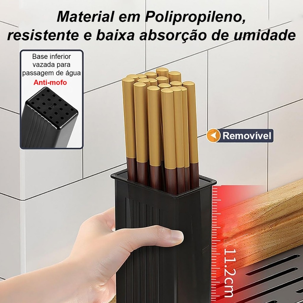 Organizador de Talheres com Suporte de Facas, Tampa, Escorredor e 2 Ganchos Laterais Praticidade e organização para a sua cozinha! Esse organizador multifuncional é ideal para manter seus utensílios sempre à mão e sua pia livre de bagunça. Com espaço para talheres, facas e tampas de panela, ele também conta com um escorredor para facilitar o escoamento da água, mantendo tudo sempre seco e higiênico. Possui 2 ganchos laterais perfeitos para pendurar panos de prato, escumadeiras ou outros utensílios de uso diário. Características do produto: -Compartimentos para talheres, facas e tampas -Escorredor integrado com base que evita acúmulo de água -2 ganchos laterais removíveis -Material resistente e fácil de limpar -Design moderno e funcional Ideal para cozinhas compactas ou para quem busca mais praticidade no dia a dia. Aproveite e transforme sua rotina na cozinha!