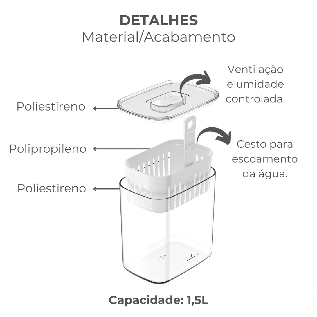 Organizador de Temperos 2,3 / 1,5L Geladeira Clear Fresh Saladas Vegetais Tempero Cesto Escorredor