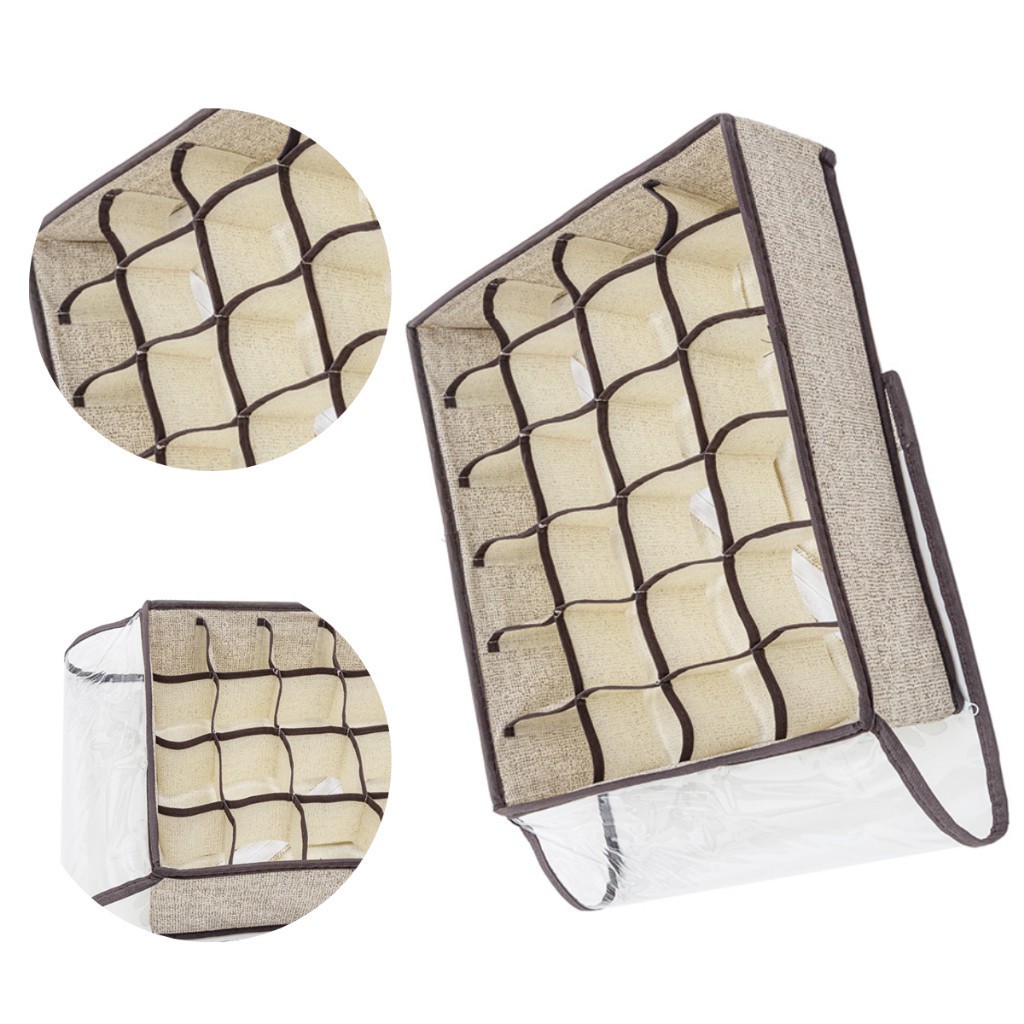 Organizador Dobrável 24 Divisórias Com Tampa Transparente Para Guarda Roupas E Gavetas Anti Poeiras