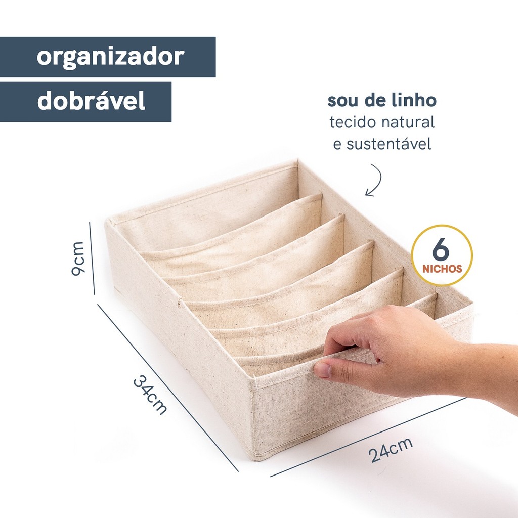 Organizador Dobrável com 6 Divisórias Horizontais Linho - Oikos