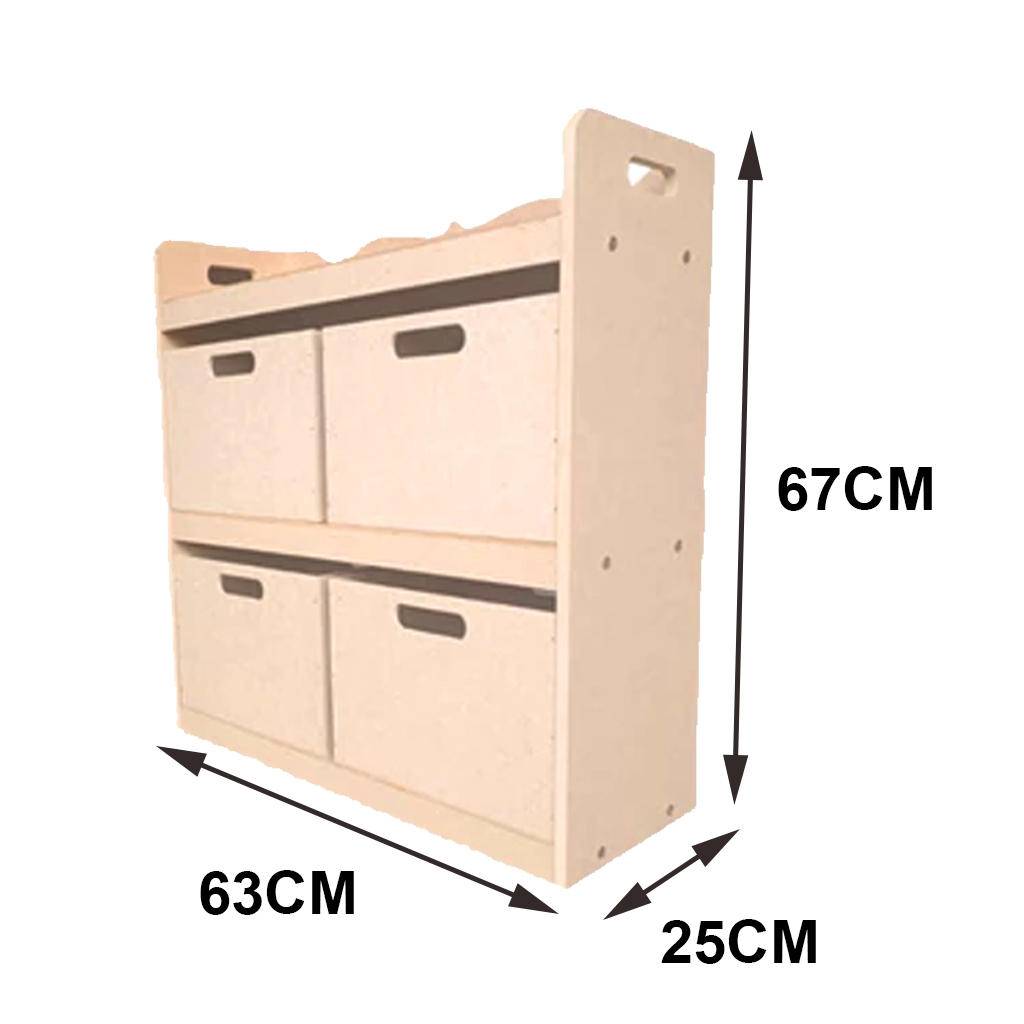 Organizador em MDF Cru para Brinquedos – 4 Gavetas Estilo Montessori