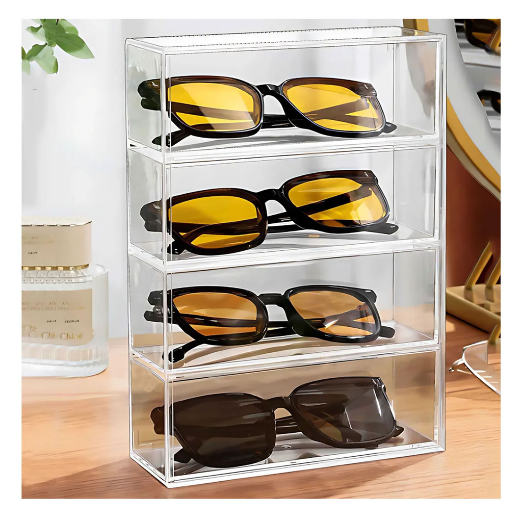 Porta Óculos Escuro Sol Organizador Estojo 4 Divisórias Case Transparente ========== SOBRE O PRODUTO ========== O Porta Óculos Escuro Sol Organizador Estojo 4 Divisórias Case Transparente é a solução ideal para guardar seus óculos com praticidade e segurança. Com design moderno e transparente, permite fácil visualização das peças, otimizando seu tempo no dia a dia. Conta com 4 divisórias individuais que protegem contra arranhões e quedas, ideal para manter seus óculos organizados em casa ou durante viagens. ========== ESPECIFICAÇÕES ========== Possui 4 divisórias independentes, ideal para organizar até 4 óculos. Material resistente e transparente, facilita a visualização dos itens. Protege contra arranhões, poeira e impactos leves. Tamanho compacto, ideal para uso doméstico ou transporte. Design moderno e funcional, combina com qualquer ambiente. ========== FICHA TÉCNICA ========== Medidas: 23 x 17 x 7,5cm Material: Polipropileno Marca: Paramount Garantia: 3 meses Estamos online para quaisquer dúvidas, Agradecemos e aguardamos o seu pedido. ========== PERGUNTAS FREQUENTES ========== P: Cabe óculos de grau e de sol? R: Sim, as divisórias são compatíveis com a maioria dos modelos de óculos de grau e de sol. P: As divisórias são removíveis? R: Sim, as divisórias são removiveis. P: Posso usar para outros itens além de óculos? R: Sim, pode ser usado para guardar relógios, acessórios ou pequenos objetos. P: O produto é original? R: Sim, todos os nossos produtos são 100% originais e garantidos pela qualidade das marcas que representamos. P: Acompanha nota fiscal? R: Sim, todos os nossos produtos acompanham nota fiscal para garantir a sua segurança e satisfação. P: O produto é novo ou usado? R: Todos os nossos produtos são novos e vêm em embalagens originais.