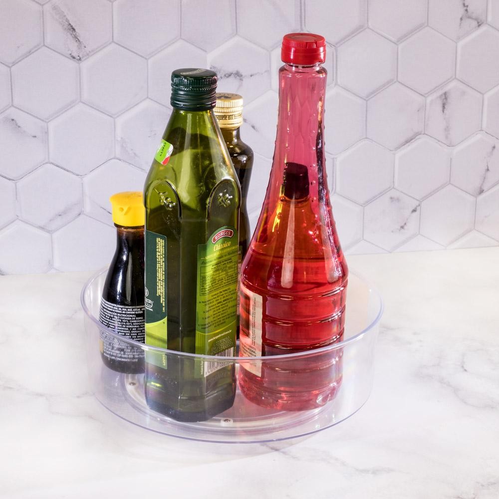 Organizador Giratório Pequeno Plástico Plasútil Dimensao: (Diâmetro x Alt): 23,5x9,0 cm - O organizador giratório possui base que rotaciona 360° e facilita a segmentação dos produtos escolhidos. - Fabricado em plástico poliestireno (PS), atóxico e livre de bisfenol-A (BPA FREE). - Supertransparente: rápida identificação dos itens armazenados. O que não é visto, não é lembrado! - Versatilidade: diversos tipos de uso e ambientes, como bancada de maquiagem, condimentos, mesa do escritório, itens de higiene pessoal... - O organizador giratório pode ser usado de diversas formas, conforme o momento ou necessidade de organização..