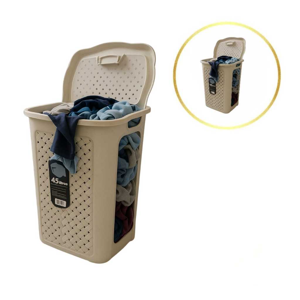 BEM VINDOS A BRIE REPRESENTAÕES DESDE 2020 INOVANDO SEU LAR. ------- ENVIO IMEDIATO --- ENVIO IMEDIATO ----- Cesto de Roupa 45 Litros com Tampa e Alça – Preto ou Cinza Marmorizado Mantenha sua casa organizada com praticidade e estilo! Este cesto de roupa de 45 litros é produzido em plástico resistente, garantindo durabilidade e leveza no dia a dia. Possui tampa para manter a higiene e alças laterais que facilitam o transporte. Disponível nas cores preto ou marmorizado, combina facilmente com qualquer ambiente, deixando sua lavanderia ou banheiro mais elegante. ✔️ Capacidade de 45 litros – ideal para roupas de toda a família ✔️ Com tampa – mantém a discrição e evita odores ✔️ Com alças laterais – fácil de carregar e transportar ✔️ Material resistente e durável ✔️ Disponível em preto ou marmorizado – escolha o estilo que combina com você Perfeito para quem busca organização, praticidade e design moderno em um só produto!