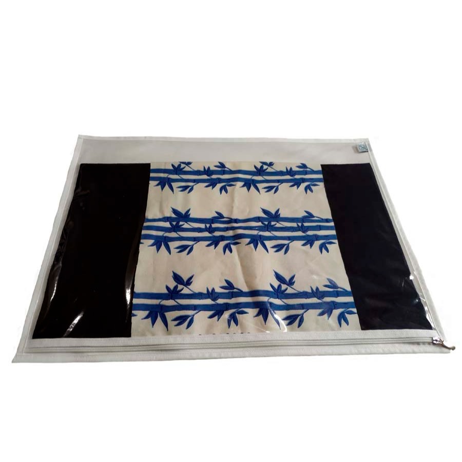 Maravilhoso organizador e protetor para jogos americanos e guardanapos. Fabricado com visor em pvc cristal transparente da melhor qualidade; sem deixar cheiro de plástico pela gaveta ou em seus pertences. A parte de trás é feita em TNT 0,80gramas na cor branca ; assim o organizador deixará os seus jogos americanos e guardanapos com a circulação de ar; evitando manchas e cheiros . Possui abertura em zíper em toda a extensão linear para melhor acondicionamento e manuseio na hora de retirar ou guardar. Acabamento em viés na cor branca de gorgurão por toda a sua extremidade; dando lhe melhor acabamento e proporcionando um excelente produto para uso por um longo tempo. Tamanho : 56cm ( comprimento ) x 42cm ( altura ). Poderá organizar o jogo americano e guardanapo em uma única peça; prevalecendo a praticidade na hora de pegar para organizar a sua brilhante mesa posta. FICA A DICA : Modelo retangular; mas poderá também organizar os seus jogos redondos caso deseje ou mesmo a toalha de mesa.