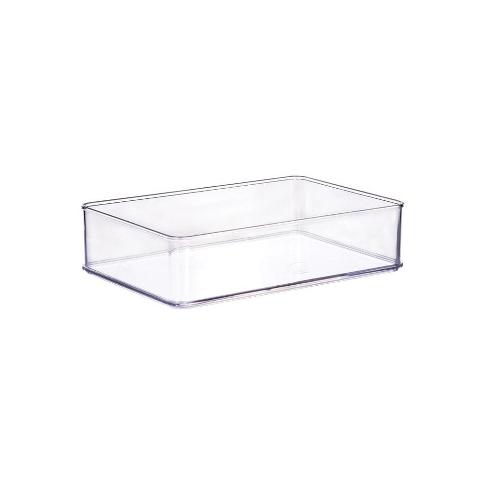 Organizador Modular Empilhável Plasútil Encaixa 15450 T6 Dimensao: (Comp x Larg x Alt): 21,9x14,6x5,5 cm Altura H1 - 5,4cm Modelo compatível com a tampa T6 O organizador enCaixa com altura H1 (5,4cm) é ideal para a organização de gavetas de escritório, gavetas de talheres, para guardar miudezas em geral, como acessórios para cabelo, itens de maquiagem e higiene, entre outros. O sistema de organização enCaixa conta com atributos que são essenciais para qualquer organização: 26 formatos: todos múltiplos do menor formato. Paredes retas: sem ângulo, otimizando 100% do espaço na organização! Empilhamento perfeito (com ou sem tampa): o fundo de cada produto encaixa perfeitamente no seu semelhante! Tampas: vendidas separadamente, conforme a necessidade da organização, uma vez que o fundo de cada organizador já fecha o organizador que está posicionado abaixo! Supertransparente: Rápida identificação dos itens armazenados. O que não é visto, não é lembrado! Versatilidade: encaixam em qualquer espaço, seja ele vertical ou horizontal. Organização viva: os organizadores podem migrar de uso e ambiente, conforme o momento ou necessidade de organização. Mais que uma caixa, um sistema de organização! A linha de organizadores enCaixa conta com 26 modelos de caixas, que variam em altura, largura e profundidade, o que torna esse o organizador mais completo e mais versátil do mercado. Fabricado em Politereftalato de etileno (PET) um tipo de plástico super transparente, atóxico e que não contém BPA em sua composição. Este material é MUITO MAIS RESISTENTE A IMPACTOS e mais maleável que a versão anterior em PS (Poliestireno). Produto sensível ao calor: Não pode ser aquecido no micro-ondas. Não pode ser lavado na lava-louças. .