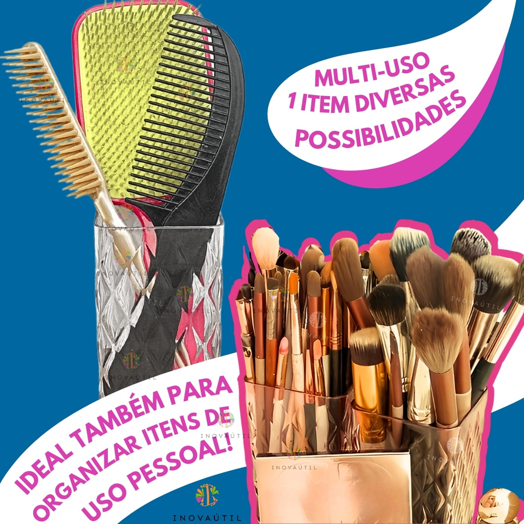 Organizador Multi Uso Porta Pincel de Maquiagem Kit 2 Peças Acessórios Escovas Batom Bancada