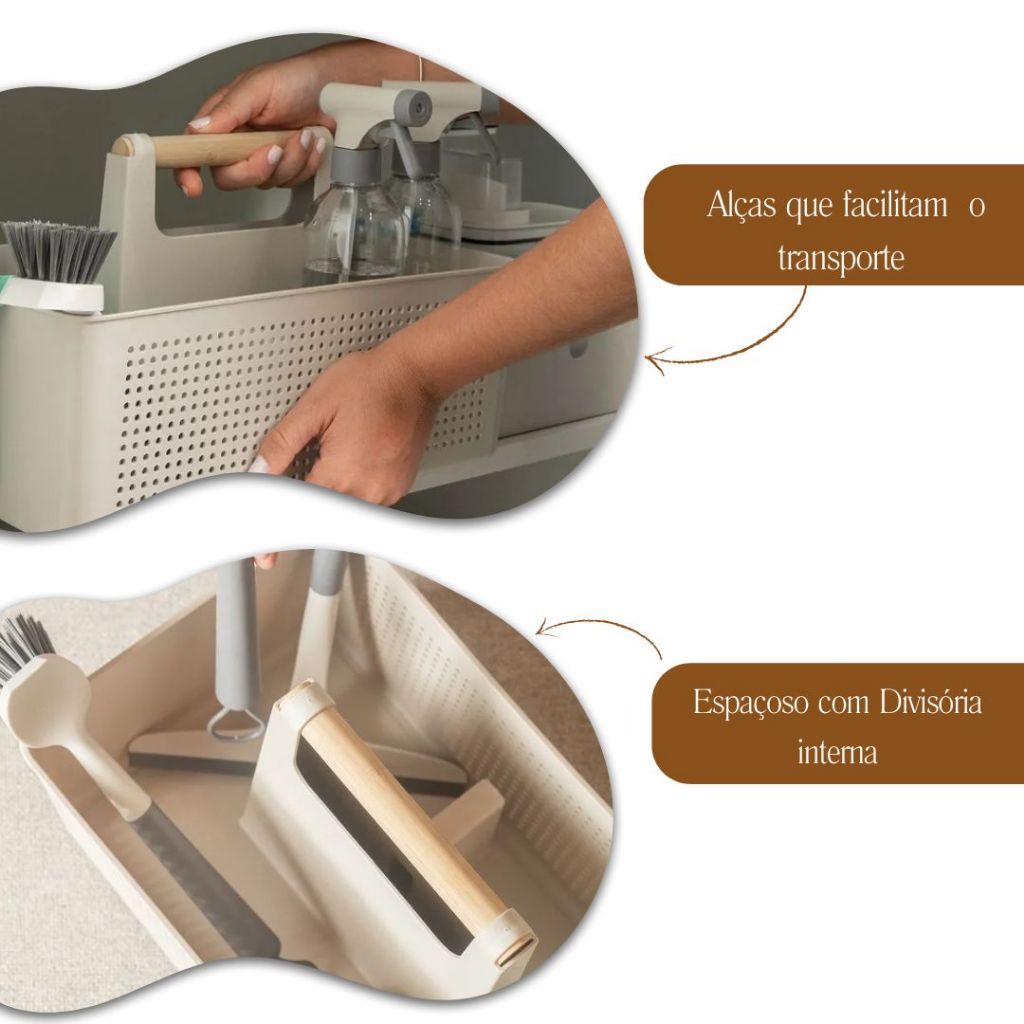 Organizador Multiuso Lavanderia Armazenamento e Transporte de Utensílios de Limpeza Flow Bege