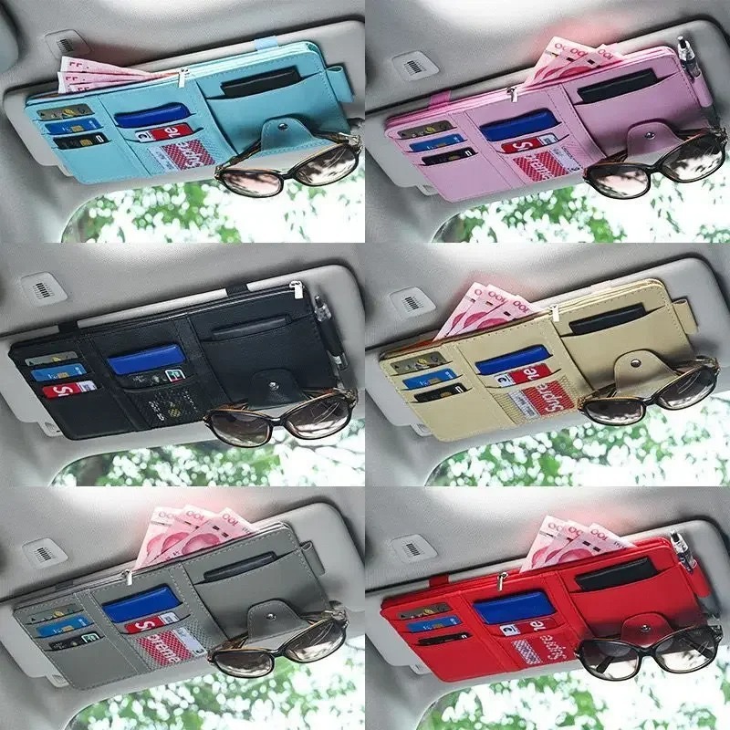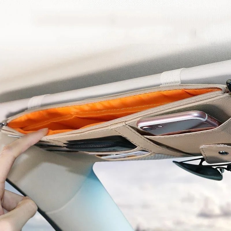 Organizador Multiuso Universal de Painel Solar para Carro, Armazenamento de Automóveis Óculos, Celular, Cartões e Bilhet