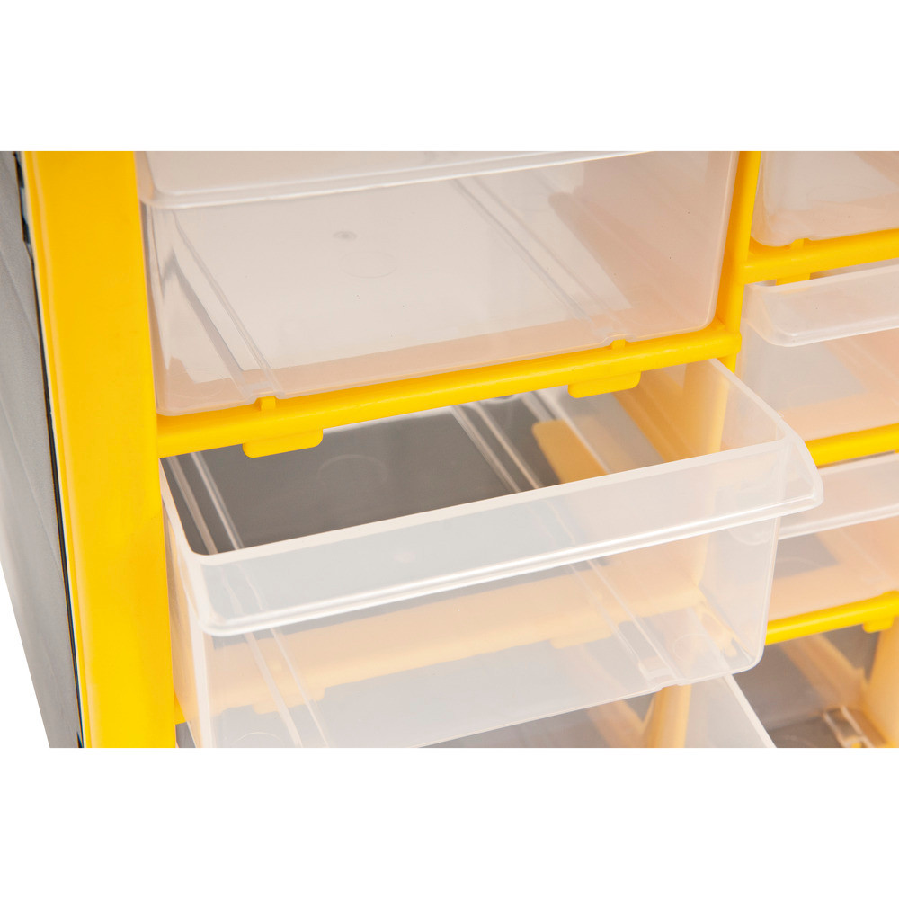 Organizador Plástico Vonder com 30 Gavetas: A Solução Definitiva para sua Organização Transforme a desordem em organização com o Organizador Plástico Vonder OPV0300. Projetado para quem busca praticidade e eficiência, este organizador com 30 gavetas é perfeito para armazenar uma variedade de peças, ferramentas e acessórios, mantendo tudo facilmente acessível. Sua construção em polipropileno garante alta durabilidade e resistência, suportando até 20 kg de peso, ideal para uso intensivo em oficinas, garagens, despensas ou até mesmo em casa. Com dimensões de 500x160x250mm, ele se adapta a diferentes espaços, otimizando prateleiras e bancadas. As gavetas transparentes permitem identificar o conteúdo rapidamente, economizando tempo e esforço. Além disso, o design empilhável oferece a flexibilidade de expandir seu sistema de organização conforme suas necessidades aumentam. Invista em um ambiente mais organizado e produtivo com a qualidade e confiabilidade Vonder. Especificações Material: Polipropileno Tipo de organizador: Estojo Marca: Vonder Código universal de produto: 7893946190903 Comprimento: 500,0 mm Largura: 160,0 mm Altura: 250,0 mm Cor: Preto/amarelo e transparentes Capacidade de carga: 20 kg Itens Inclusos 1 Organizador plástico Vonder OPV0300 Indicações de Uso Organização de parafusos, pregos e arruelas em oficinas mecânicas. Armazenamento de miçangas, linhas e agulhas para artesãos e costureiras. Ideal para organizar pequenos brinquedos e acessórios infantis em quartos. Perguntas Frequentes (FAQ) Pergunta: Qual o material de fabricação do organizador? Resposta: O organizador é fabricado em polipropileno, um material resistente e durável. Pergunta: Qual a capacidade de carga do organizador? Resposta: Este organizador suporta uma carga de até 20 kg. Pergunta: O organizador possui garantia? Resposta: Sim, o produto possui garantia legal de 90 dias contra defeitos de fabricação.