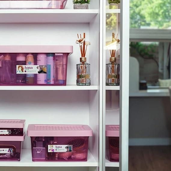 A linha de organizadores Hana foi especialmente desenvolvida para as necessidades da mulher. Praticidade, organização e carinho por acessórios traduzidos em organizadores com e sem divisórias. Uma linha completa para organizar e decorar ambientes como salas, quartos e banheiros com muito charme e elegância. O Organizador Plástico Multiuso Alto Rosé 8,5L Hana Ordene possui infinitas possibilidades de organização e decoração de quartos, banheiros e salas. Com tampa ventilável, auxilia para que fique tudo organizado, visível e à mão. Medidas: 15,2 x 31,5 x 20 cm (A x L x C)