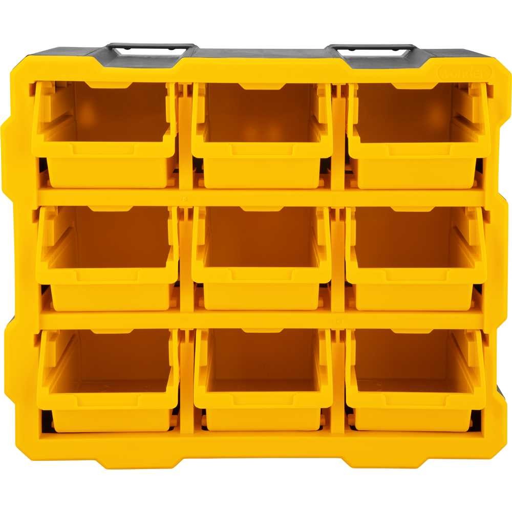 O organizador plástico OPV 090 VONDER é uma solução prática para guardar e organizar peças, ferramentas e acessórios com segurança e eficiência. Ideal para oficinas, garagens e ambientes profissionais ou domésticos, ele oferece estrutura robusta e versátil, podendo ser utilizado sobre bancadas ou fixado na parede, conforme a necessidade. Com 9 compartimentos do tipo caixa, o modelo OPV 090 permite também ser acoplado aos organizadores OPV 009 e OPV 099 (não inclusos), otimizando ainda mais o espaço e ampliando a capacidade de armazenamento. Produzido em polipropileno resistente, suporta até 15 kgf de carga e proporciona longa durabilidade. Características: Modelo: OPV 090 Referência: 6108000900 Material: Polipropileno Cor: Preto e amarelo Comprimento: 380 mm Largura: 180 mm Altura: 320 mm Capacidade de carga: 15 kgf Massa aproximada (peso): 1,7 kg Benefícios: Ideal para guardar e organizar ferramentas e peças Pode ser utilizado em bancada ou fixado na parede Compatível com os modelos OPV 009 e OPV 099 Alta resistência e durabilidade Design modular e prático para ambientes organizados Conteúdo da embalagem: 1 Organizador plástico