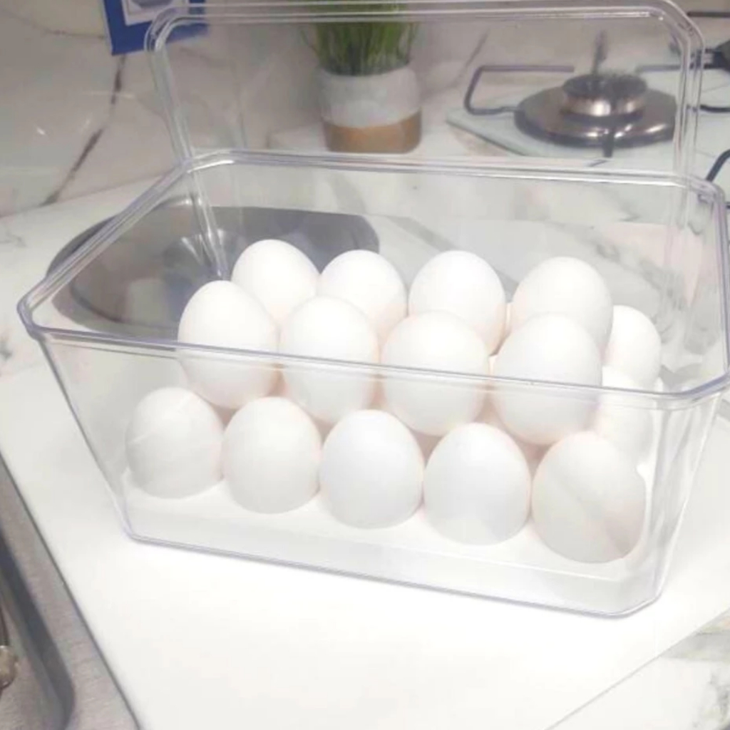 Organizador Porta Ovos Acrílico Para Geladeira 36 Ovos Suporte Interno Tampa