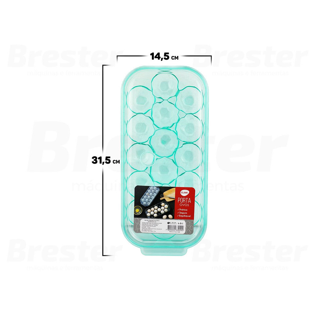 Olá, Bem vindo a Distribuidora Brester. Trabalhamos com uma grande variedade de ferramentas elétricas e manuais, descartáveis, eletroeletrônicos, artigos para casa, artigos de petshop e outros. Aqui você encontrará Produtos Originais, Nota Fiscal, Pronta Entrega e Envio Imediato! Informações do Produto: Organizador De Ovos Plástico Clink Apresentamos a você o mais novo aliado para uma cozinha organizada e eficiente: o Organizador De Ovos Plástico Clink! Libere espaço na geladeira e mantenha seus ovos sempre ao alcance, facilitando seu dia a dia na cozinha. Design prático e funcional, adaptável a qualquer geladeira, tornando o acesso e a identificação dos ovos mais simples do que nunca. Características: > Feita de plástico resistente, essa bandeja é durável e fácil de limpar; > A cor azul-turquesa traz um toque de estilo e elegância para a sua cozinha; > A tampa inclusa garante que os ovos fiquem protegidos e frescos por mais tempo; > Com suas 16 cavidades, você pode organizar seus ovos, evitando que se quebrem. Especificações Técnicas: > Material: plástico; > Dimensões do produto (C x L x A): 31,5cm x 14,5cm x 7,8cm. - Marca: Clink - Garantia: 90 dias contra defeitos de fabricação Vantagens de comprar na Brester: - Nota fiscal para Pessoa Física e Pessoa Jurídica; - Produto novo, com garantia de fábrica; - Produto a pronta entrega; - Envio em até 24hs em dias úteis após confirmação do pagamento. Obrigado por escolher a Brester Máquinas.