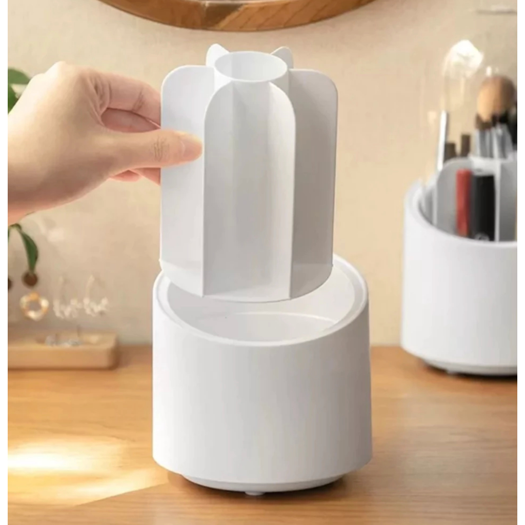 Organizador Porta Pincel Maquigem Giratório 360º de Mesa Cosmético Com Tampa Acrílico