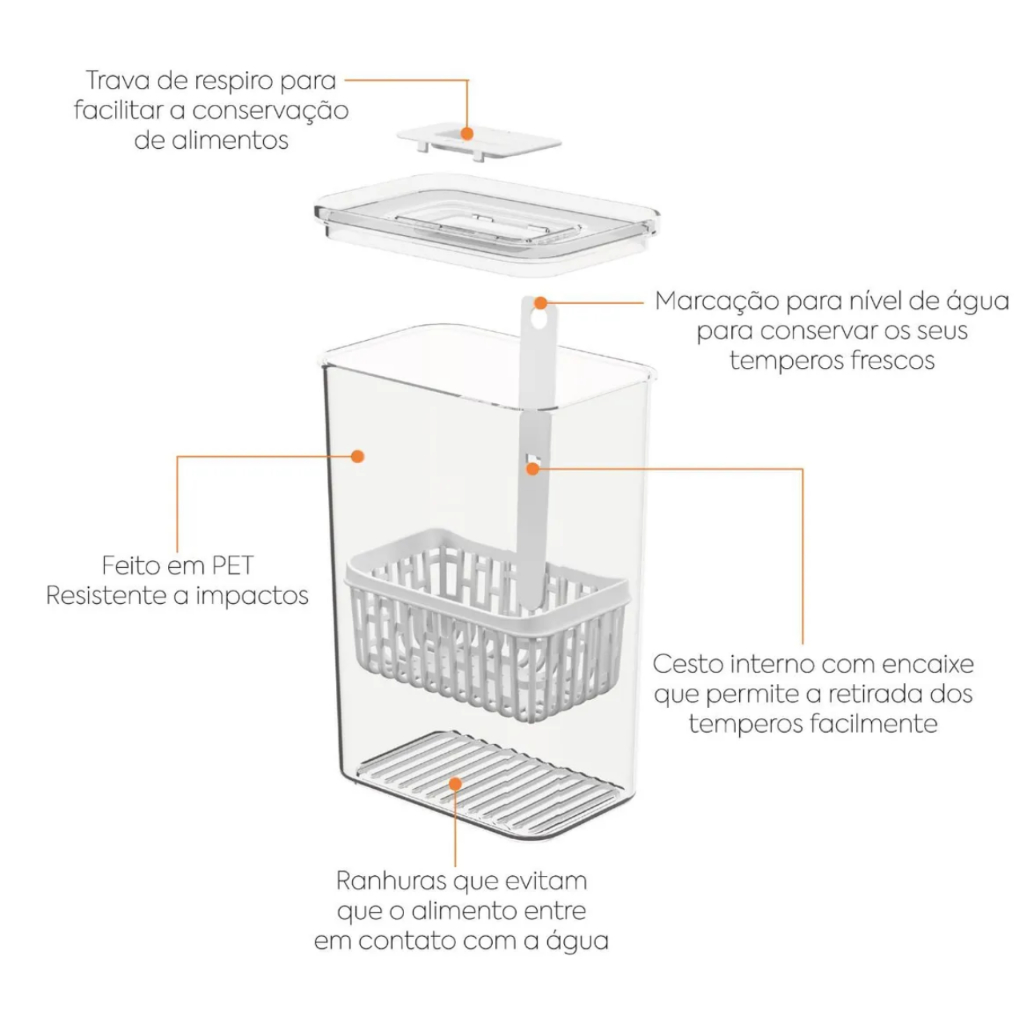 Organizador Porta Temperos fresco Clear Fresh 2,3L Cozinha Geladeira com cesto