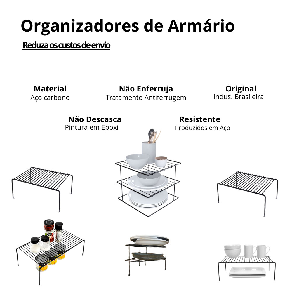 Organizador Prateleira Divisória de Armário Cozinha Organizador de Armário Aramado