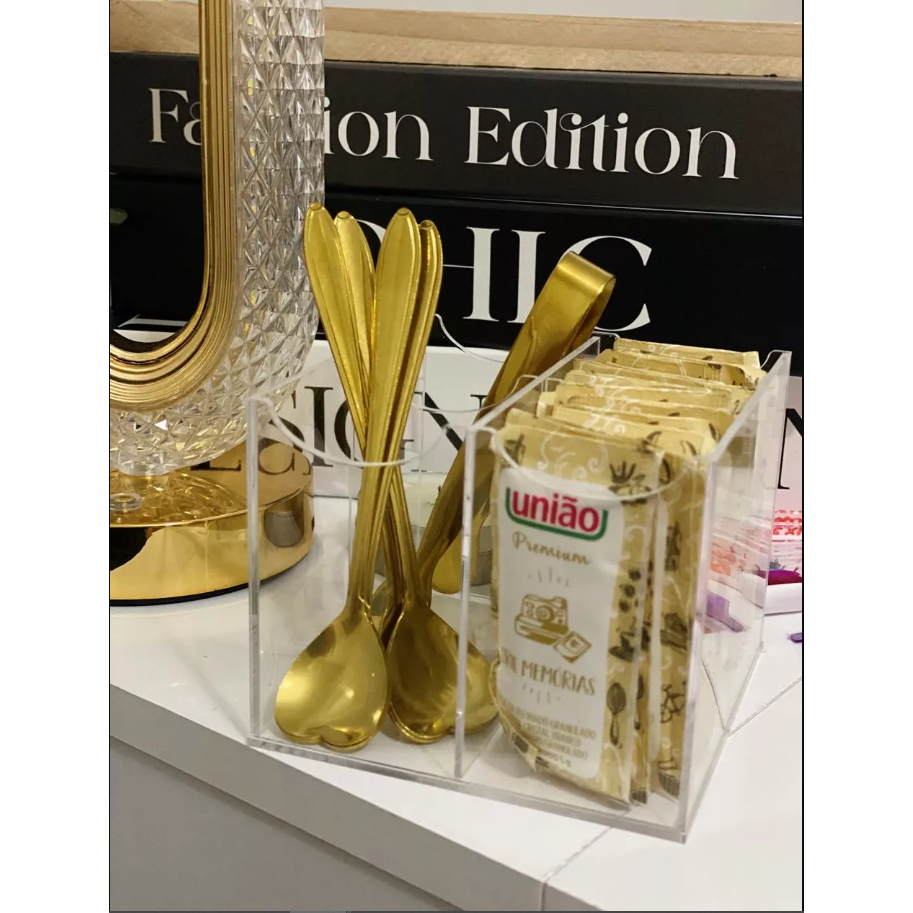 Organizador Sachês Açúcar e Mexedores 4 Nichos Acrílico Transparente