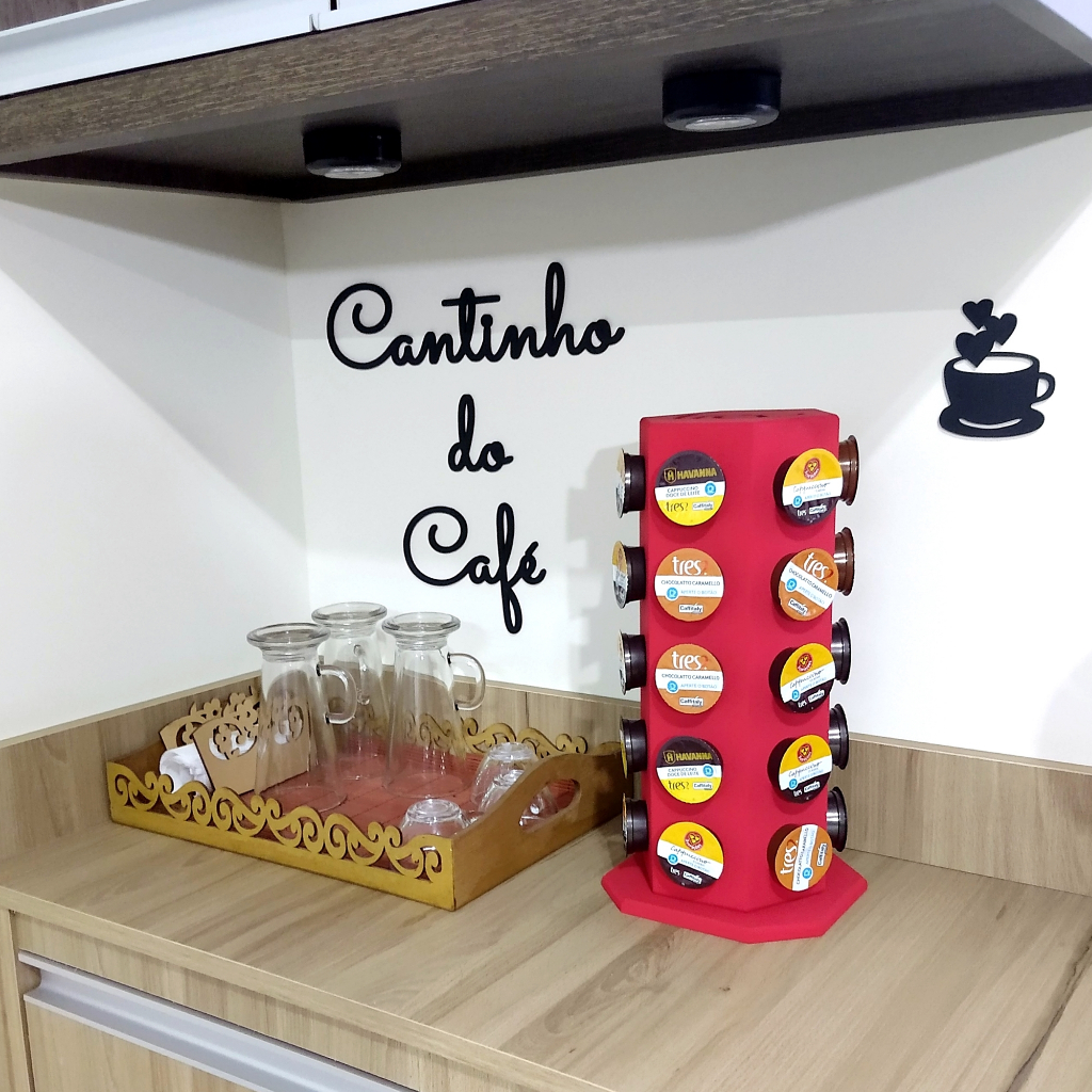Organizador TRES CORAÇÕES p/30 Cápsulas Café Suporte Porta Capsulas Torre Giratória MDF ❤ VERMELHO ❤
