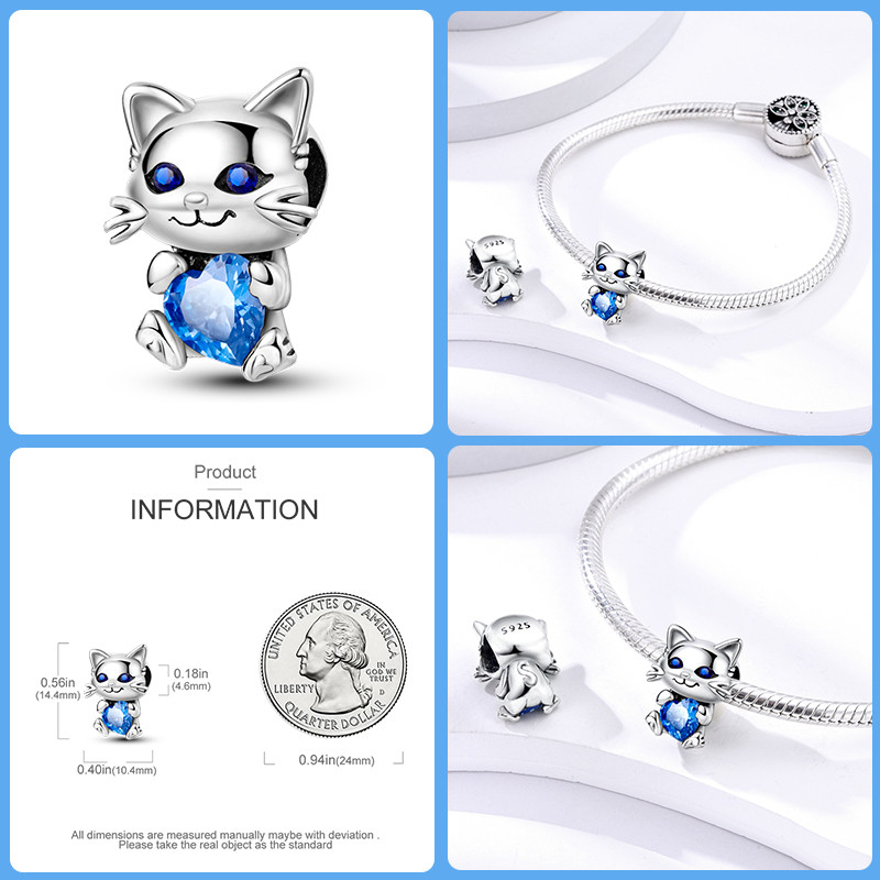 Original autêntico S925 prata esterlina contas de animais rosa coelho gato cão adequado pulseira fazendo DIY aniversário
