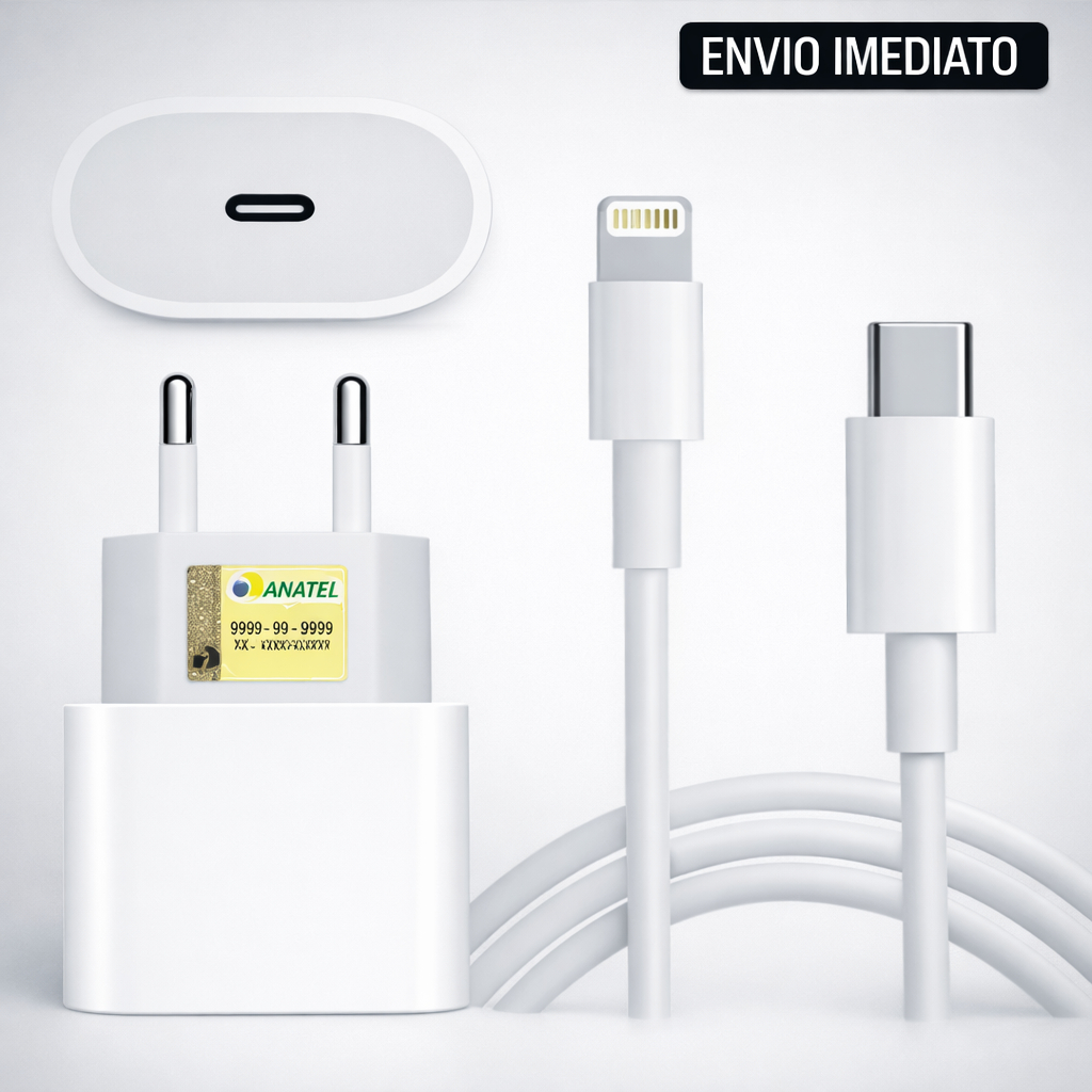 ⚡ Carregador iPhone Turbo 20W USB-C + Cabo Lightning – Recarga Rápida O adaptador de energia USB-C de 20W é ideal para quem busca carregamento rápido, seguro e eficiente. Compacto e leve, pode ser usado em casa, no trabalho ou em viagens. Compatível com dispositivos com entrada Lightning, é especialmente recomendado para iPhones e iPads compatíveis com carregamento rápido, aproveitando ao máximo a tecnologia PD (Power Delivery). 📦 Conteúdo da Embalagem ✅ 1 Fonte / Adaptador de energia USB-C 20W ✅ 1 Cabo USB-C para Lightning (1 metro) 📱 Aparelhos Compatíveis iPhone iPhone 6 / 6 Plus iPhone 6s Plus iPhone 7 / 7 Plus iPhone 8 / 8 Plus iPhone X / XR / XS / XS Max iPhone 11 / 11 Pro / 11 Pro Max iPhone SE (2020) iPhone 12 / 12 Mini / 12 Pro / 12 Pro Max iPhone 13 / 13 Pro Max iPhone 14 / 14 Pro Max 📌 Compatível com todos os modelos de iPhone que utilizam entrada Lightning. ⚙️ Especificações Técnicas Modelo: PD-01 Entrada: AC 100V – 240V | 50–60Hz (Bivolt automático) Potência Máxima: 20W Tipo de Carga: Turbo / Fast Charge Tecnologia: Power Delivery (PD) – Carregamento rápido e seguro Material: Plástico ABS de alta resistência Comprimento do Cabo: 1 metro Conector do Cabo: USB-C (fonte) ➝ Lightning (celular) Cor: Branco ⏱ Tempo médio de carregamento: cerca de 50 minutos (pode variar conforme o modelo do aparelho e nível da bateria). ⭐ Destaques do Produto ⚡ Carregamento rápido 20W (Turbo) 🔒 Sistema de proteção contra sobrecarga e aquecimento 📱 Ideal para iPhone e iPad compatíveis com Fast Charge 🎒 Compacto, leve e fácil de transportar 🔌 Bivolt automático (funciona em qualquer tomada) *NÃO PERCA TEMPO, COMPRE AGORA MESMO O SEU*