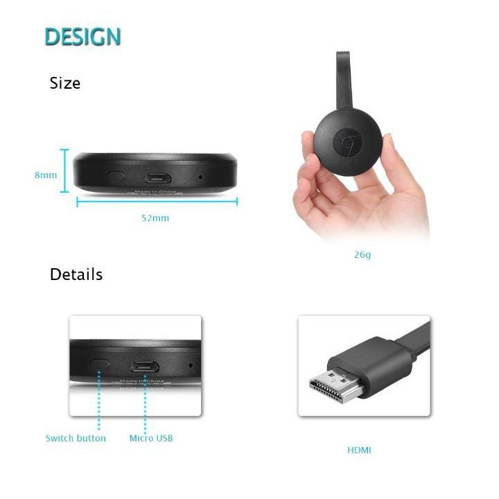 Especificações principais desta linha: 2a Geração Chromecast 2015, Chromecast 2, Novo Chromecast Jogador de Mídia Media Player Compatível com telefones e tablets Android, compatível com telefones celulares e tablets. Fone De Ouvido Com Microfone, Compatível Com iPad, AC, Windows E Vídeo on-line a vapor do vapor do vapor, foto de música e muito mais Tv portátil, tv portátil usando Smartphone, Tablet ou Laptop Configuração fácil Conecte-se a qualquer Hdtv Rede WiFi Home. ● !!! Como conectar?!!! Se houver uma tela de espelho, você pode conectá-la quando estiver fora de energia para gastar o dinheiro primeiro... Quando Você Tem Uma Tela Espelho, Por favor Insira A Configuração E Encontre O Nome Wi-Fi Na Tv, Em seguida Defina A Senha.Após A Conexão É Sucesso, Por favor Insira A Tela do Espelho E Aguarde O Nome Para Apareça antes de clicá-lo.