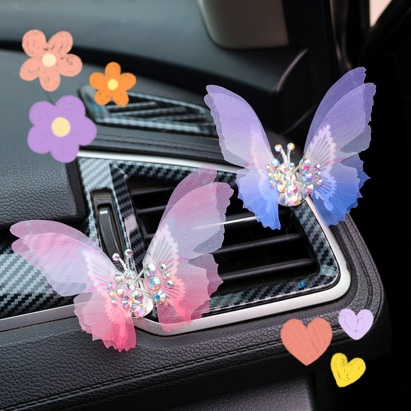 Ornamento De Carro Borboleta Com Asas Batendo-Decoração De Console Central De Saída De Ar Do-Borboletas Coloridas-Para M