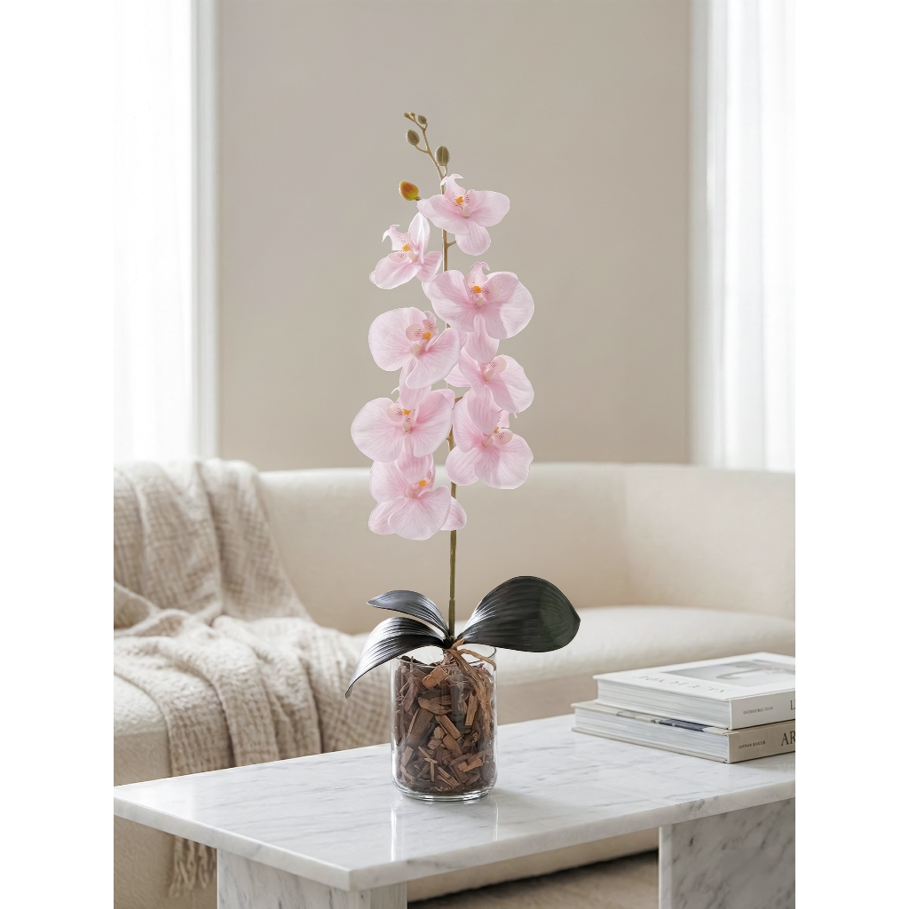 Orquidea Artificial Com Vaso Decorativo Arranjo Luna Lascas de Pinus