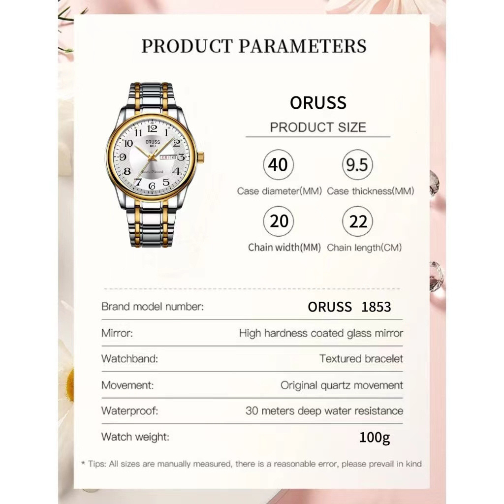 √ Produto Importado 100% Original! √ Pronto para enviar dentro de 24 horas! √ Siga minha loja para obter Voucher! √ Siga-me para novos itens! ★Características especiais: Luminoso, Data, Display de Semana, Resistência ao Impacto ★Tipo de exibição: Ponteiro ★Pessoas aplicáveis: masculino/feminino ★Estilo do estilo: Moda ★Desempenho à prova d'água: 30M ★Tipo de movimento: Quartzo ★Tipo de coroa: Coroa espiral ★Material do espelho: Vidro temperado Mineral ★Estilo da fivela: Fivela dobrável ★Material da fivela: aço inoxidável ★Material da alça: Aço inoxidável ★Formato do Mostrador: Redondo ★Material da Caixa: Liga ★Espessura da grossura: 9,5 mm ★Diâmetro do Mostrador: 40/29mm ★Comprimento da Cinta: 220/190mm ★Largura da Cinta: 20/14mm ★Nível Impermeável: 3ATM (30m) Nota: Não Pressione nenhum botão na água. ★Ideia de Presente: O Relógio É Um Grande Presente Para Aniversário, Amigo Aniversário, Aniversário Relativo, Dia da Mãe, Presente de Formatura, Presente Dia dos Namorados Ou Presente de Trabalho E Festa.(Adequado para crianças e adultos) O que há dentro? ★Relógio * 1 ★Caixa * 1 ★Ferramenta de ajuste de alça * 1 ★Manual * 1 [Característica] ★ Vida impermeável.(Não Indicado Para Banho E Natação Em Água Quente) ★ Função de calendário: Puxe o botão uma vez para ajustar o calendário/puxe o botão duas vezes para ajustar o tempo. ★ Resistência ao Impacto: Após Teste de Arranhões, O Mostrador É Ainda Intacto. ★ Função luminosa: Veja o tempo claro mesmo em um ambiente escuro. ★ Movimento Importado: Movimento Importado Original, Tempo Mais preciso. ★ Vidro Temperado Mineral: Alta Dureza, Resistência ao Impacto, Resistência a Arranhões, Alta Resistência à Temperatura ★ Correia de aço inoxidável de alta qualidade: Não alérgica, não desbota, confortável de usar, não é fácil de apodrar. Notas de Aviso ◆Por favor, insira o número de telefone e o endereço precisos. ◆Verifique antes Do pedido. Após o pedido, não aceitamos troca de nome, número, endereço ou Item. ◆Elogios de cinco estrelas (Enviar cupom) ◆Se O Produto estiver Danificado Ou Não Conhece Os Requisitos, Não se Apresse Para Dar Uma Avaliação Negativa, Dê-nos uma Chance Para Resolver O Problema Para Você. ◆Obrigado por suas compras!