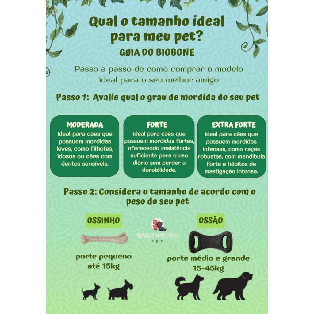 Caros Clientes, por favor, leiam com atenção o anúncio. Isso ajudará a ter certeza do que está comprando. Contém 01 (UM) Mordedor Bio Bone Ossinho P– Ideal para Porte Pequenos ATENÇÃO! Escolher a variação antes de efetuar o pagamento Seu cão de mordida pesada merece um mordedor à altura! Apresentamos o Mordedor Durável para Cães, especialmente projetado para cães de porte médio e grande com mordidas fortes e destruidoras. Características do Produto: || Material Premium: Fabricado com cana de açucar, garantindo máxima durabilidade e resistência para suportar as mordidas mais intensas. || Sustentabilidade em Primeiro Lugar: Totalmente livre de plásticos, este mordedor é 100% feito de plantas, contribuindo para a preservação do meio ambiente e oferecendo um produto eco-friendly de alta qualidade. || Entretenimento Prolongado: Perfeito para manter seu cão entretido por longas horas, ajudando a evitar comportamentos destrutivos e promovendo a saúde dental ao mesmo tempo. Benefícios: || Resistência Superior: Ideal para cães que têm o hábito de destruir brinquedos rapidamente. A robustez do material garante que o mordedor dure muito mais tempo. || Saúde Dental: Ajuda a reduzir a formação de placa e tártaro, promovendo uma melhor saúde bucal para o seu cão. || Segurança e Conforto: Sem componentes tóxicos ou químicos, é seguro para seu pet, e o design ergonômico proporciona uma experiência de mastigação confortável. || Estimulação Mental e Física: Desafia seu cão a usar sua força e inteligência, evitando o tédio e mantendo-o ativo e engajado. || Fácil Manutenção: Pode ser limpo facilmente, mantendo a higiene e a durabilidade do produto. || Design Atraente: O visual moderno e o formato interessante atraem a atenção do seu cão, tornando o mordedor ainda mais irresistível. Dê ao seu companheiro o mordedor que ele merece! Adquira já o Mordedor Durável para Cães e veja a diferença na diversão e no entretenimento do seu amigo de quatro patas. Obrigada por visitar nossa loja!! Qualquer dúvida é só mandar uma mensagem!