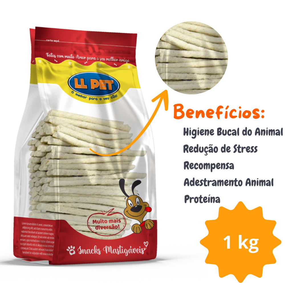 Osso Ossinhos Palitos Petiscos Mastigáveis LLPet Cães 1Kg