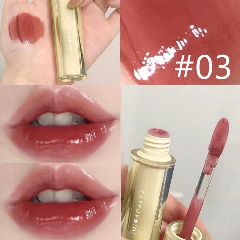 Brilho labial de geléia de chá portátil: Hidratante, não pegajoso e preenchendo com acabamento em vidro translúcido. O pincel em forma de coração pontiagudo apresenta um pincel apontado para aplicação precisa. Impermeável e duradouro. Pode ocorrer pequenas variações de cor e tamanho.)